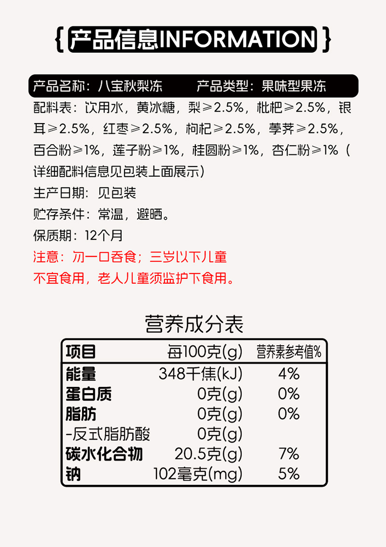 商品名称:佬食仁八宝秋梨冻418g/箱约20个*3箱