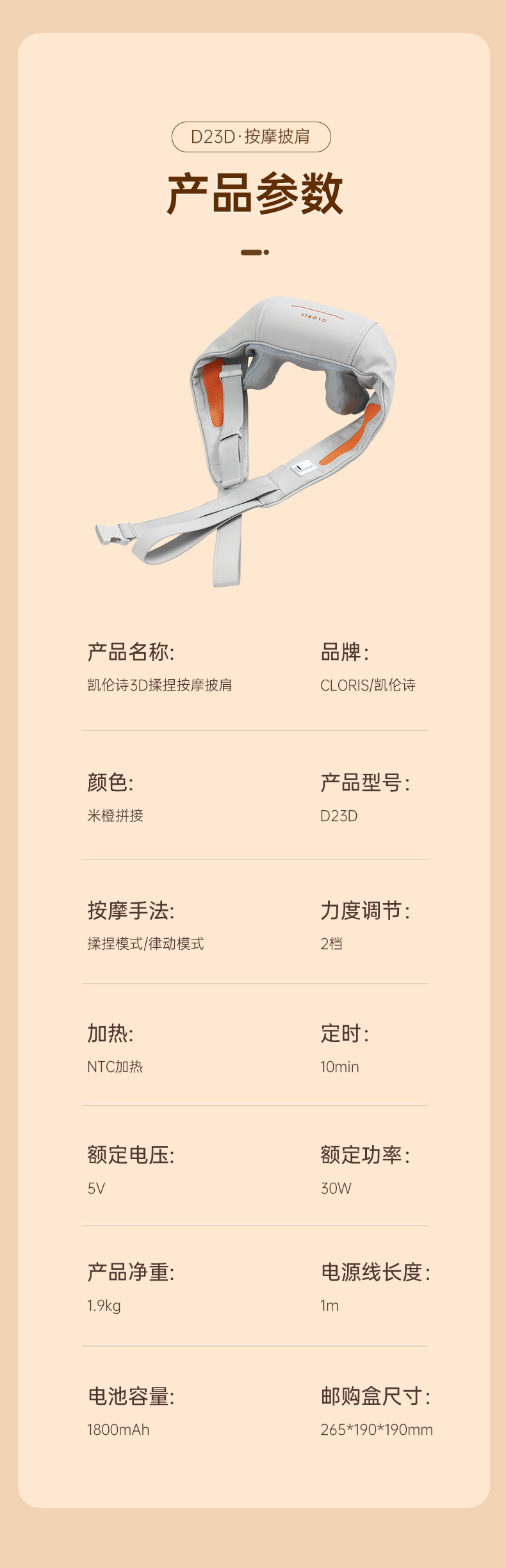 凯伦诗3D揉捏按摩肩带D23D 6975608033207