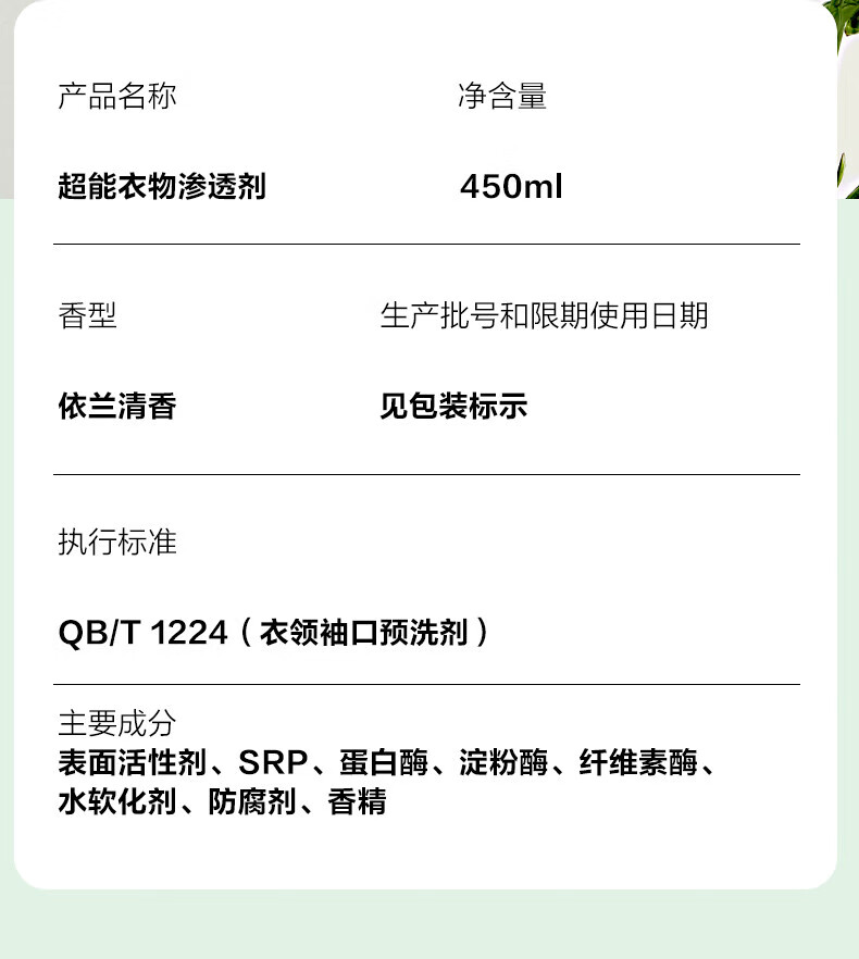 商品名称:超能 衣物渗透剂 450ml 6910019029098