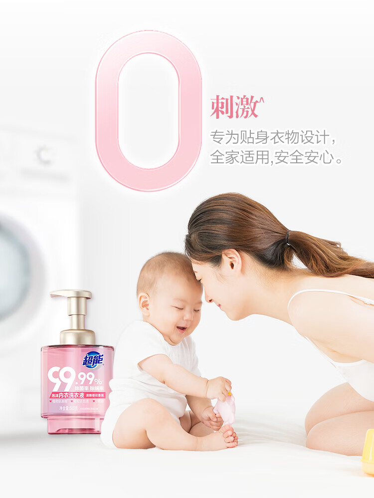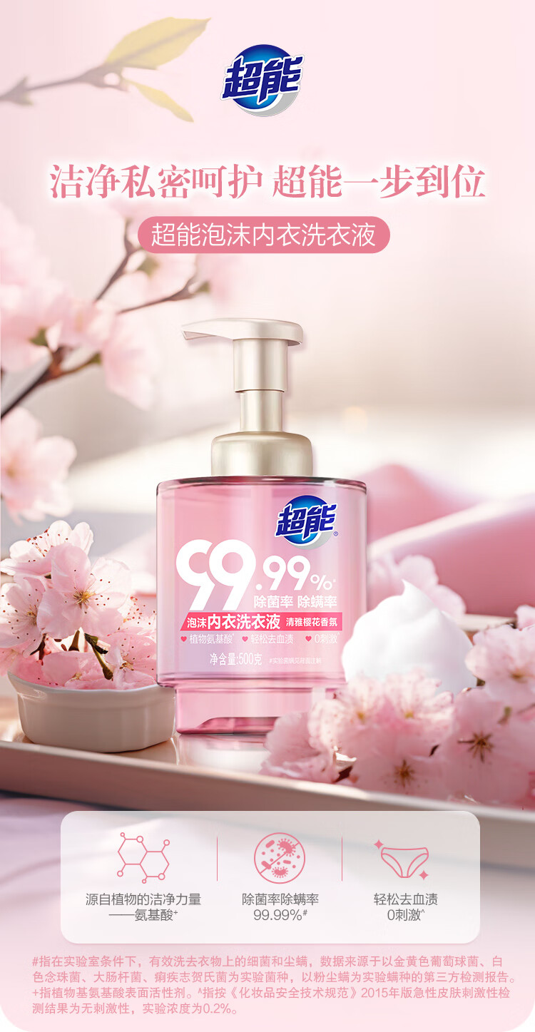 超能 泡沫内衣洗衣液 1斤(500g) 轻松去血渍 99.99%除菌除螨 0刺激 6910019028930