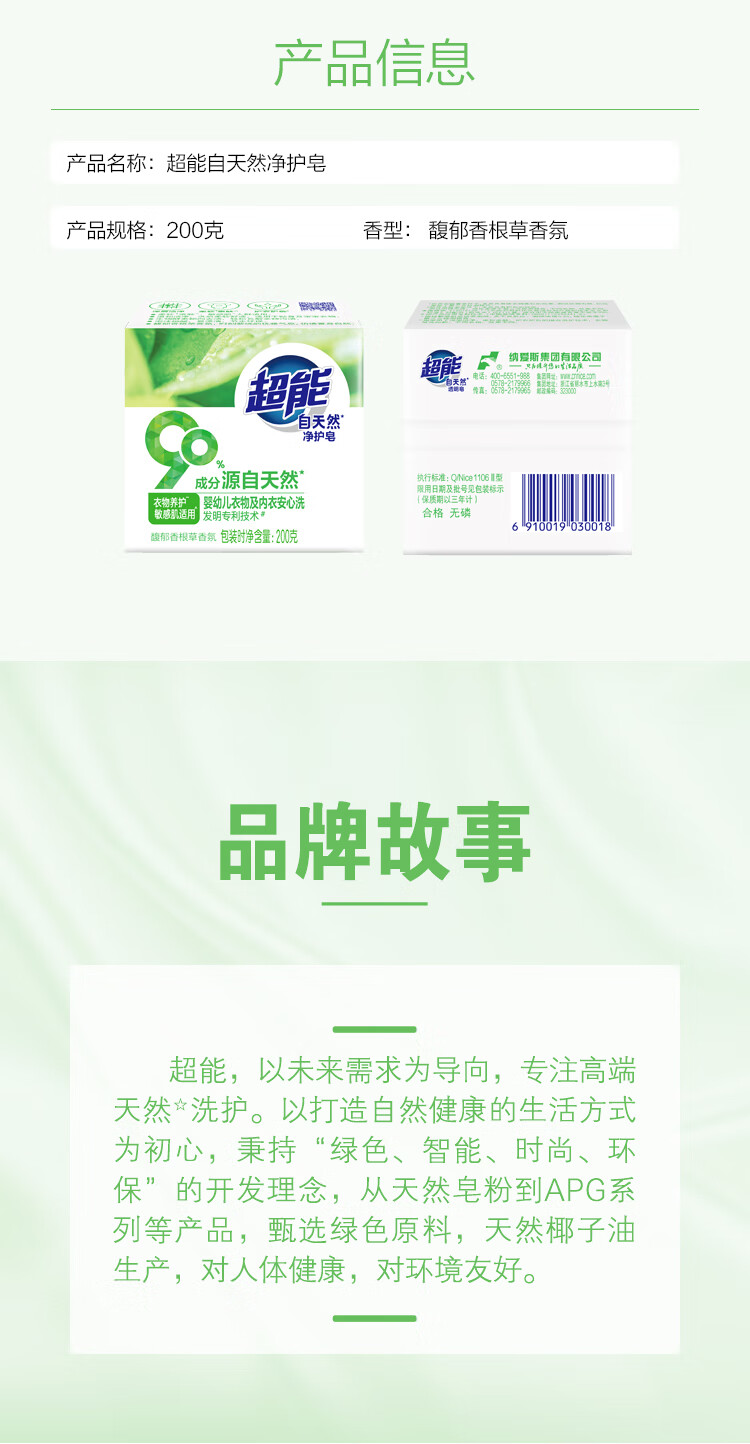 商品名称:超能 自天然净护皂 香根草香 200g*2块 6910019030018