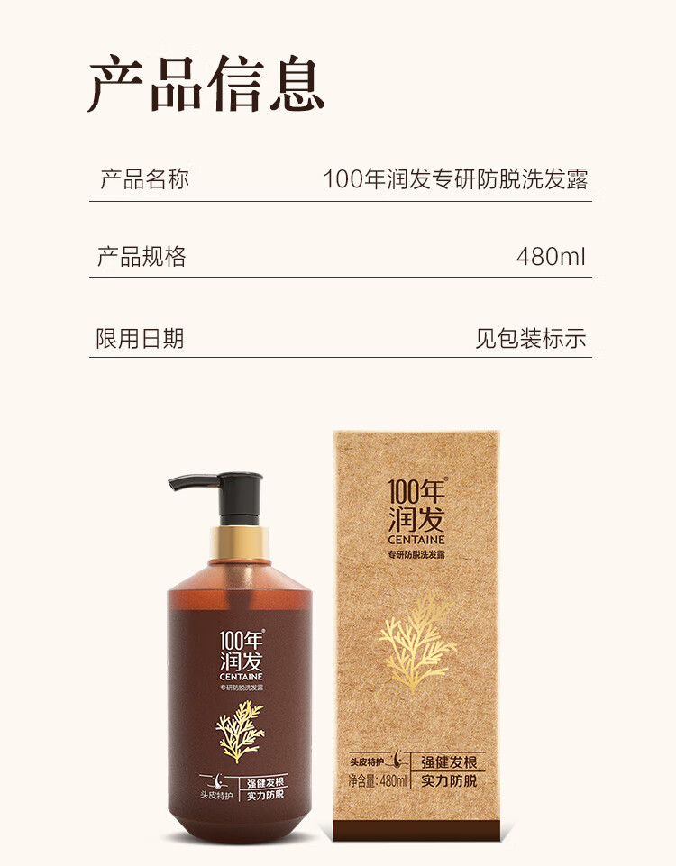 商品名称:100年润发防脱育发控油蓬松去屑止痒洗发露 洗发露480ml*1瓶 6910019025137