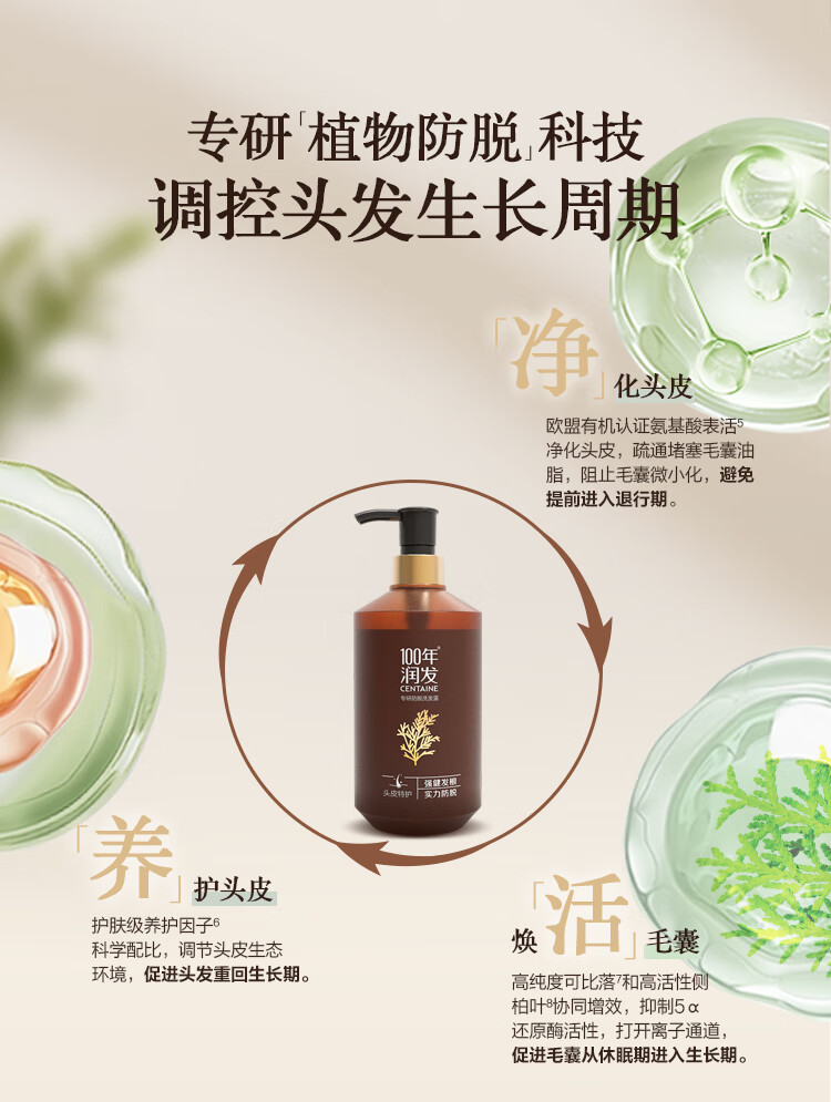 100年润发防脱育发控油蓬松去屑止痒洗发露 洗发露480ml*1瓶 6910019025137