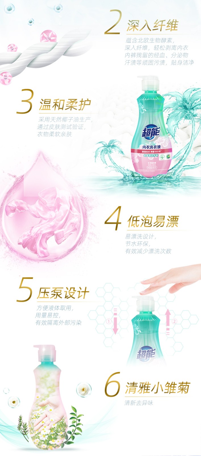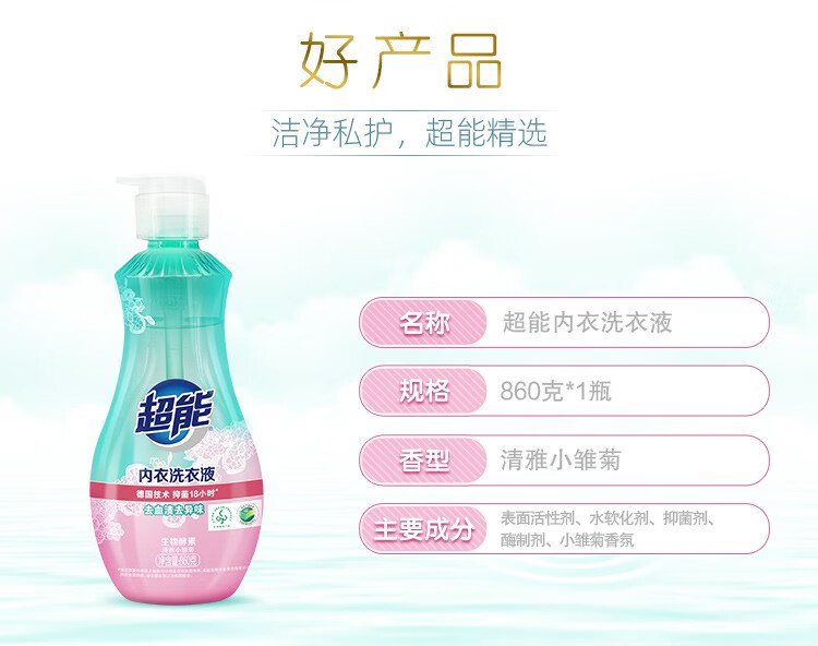 商品名称:超能男女士内衣内裤专用清洗液大瓶洗衣液去血渍去味抑菌除菌旗舰 【除菌去血渍】860g*1瓶 6910019022563