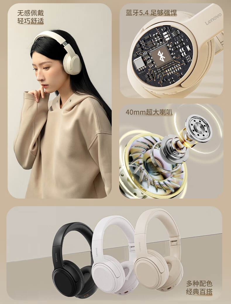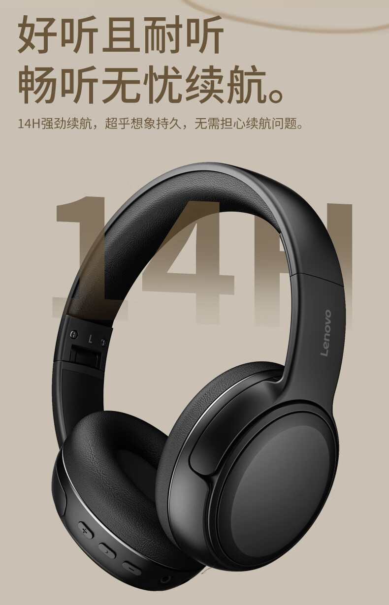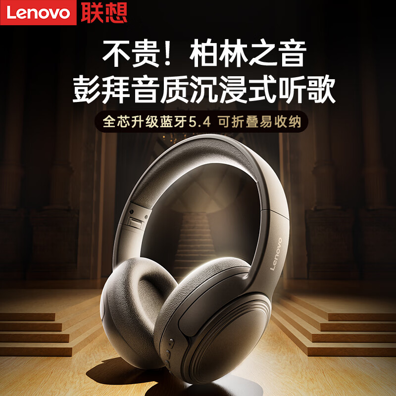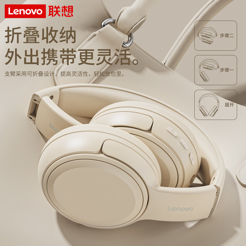 联想(lenovo)蓝牙耳机头戴式无线降噪耳机可折叠蓝牙5.4电竞游戏音乐运动通用苹果小米手机EB320 黑色/白色
