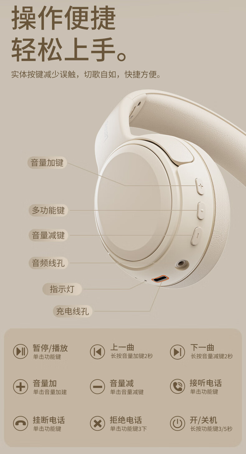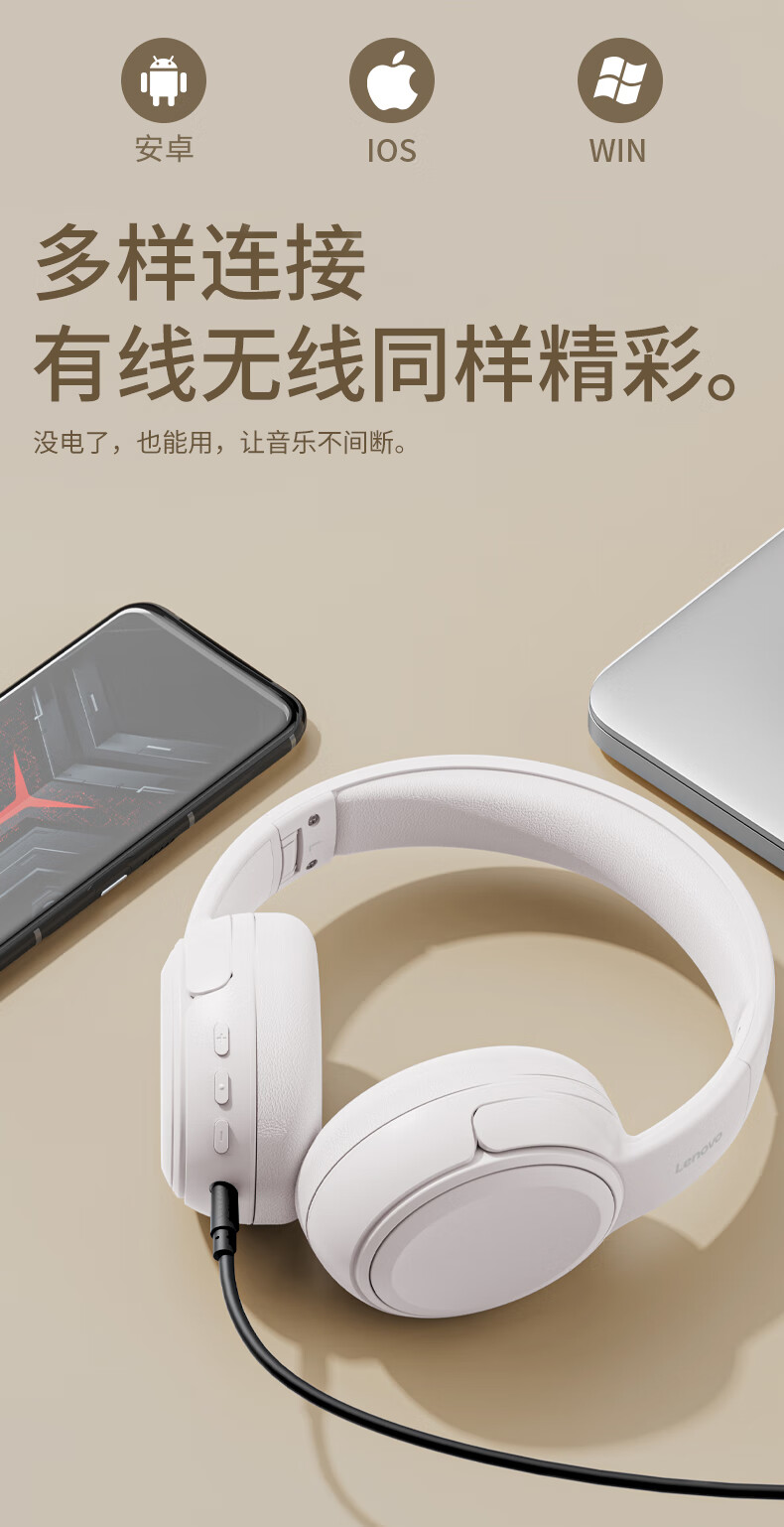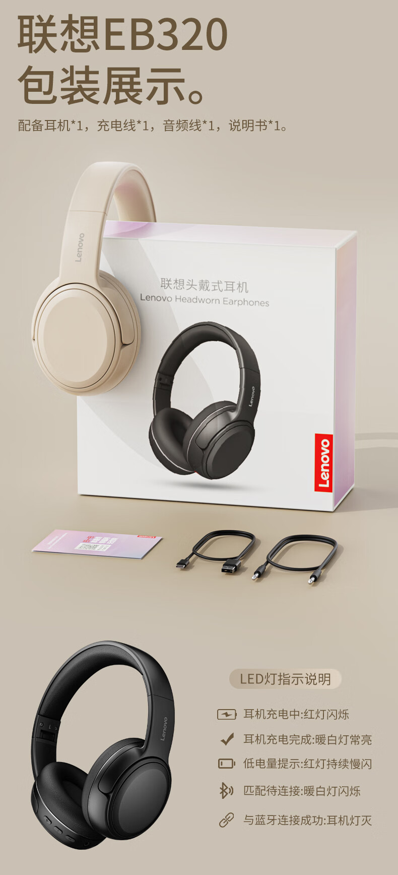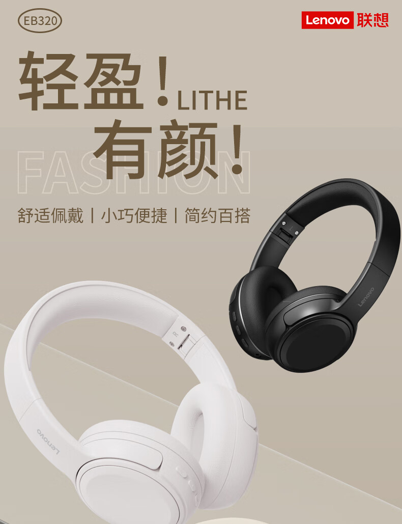商品名称:联想(lenovo)蓝牙耳机头戴式无线降噪耳机可折叠蓝牙5.4电竞游戏音乐运动通用苹果小米手机EB320 黑色/白色