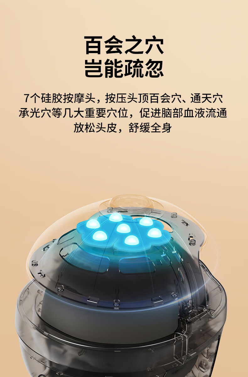 摩飞(MORPHYRICHARDS)头皮智能按摩梳深空黑 红光护发滋养护头皮头部按摩仪器 MR3128 米白色 6975660321281
