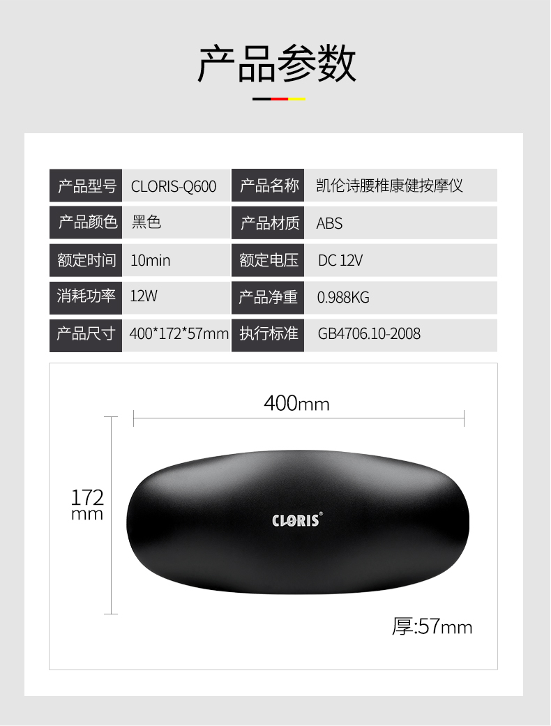 商品名称:凯伦诗腰椎康健按摩仪CLORIS-Q600 6971024463130