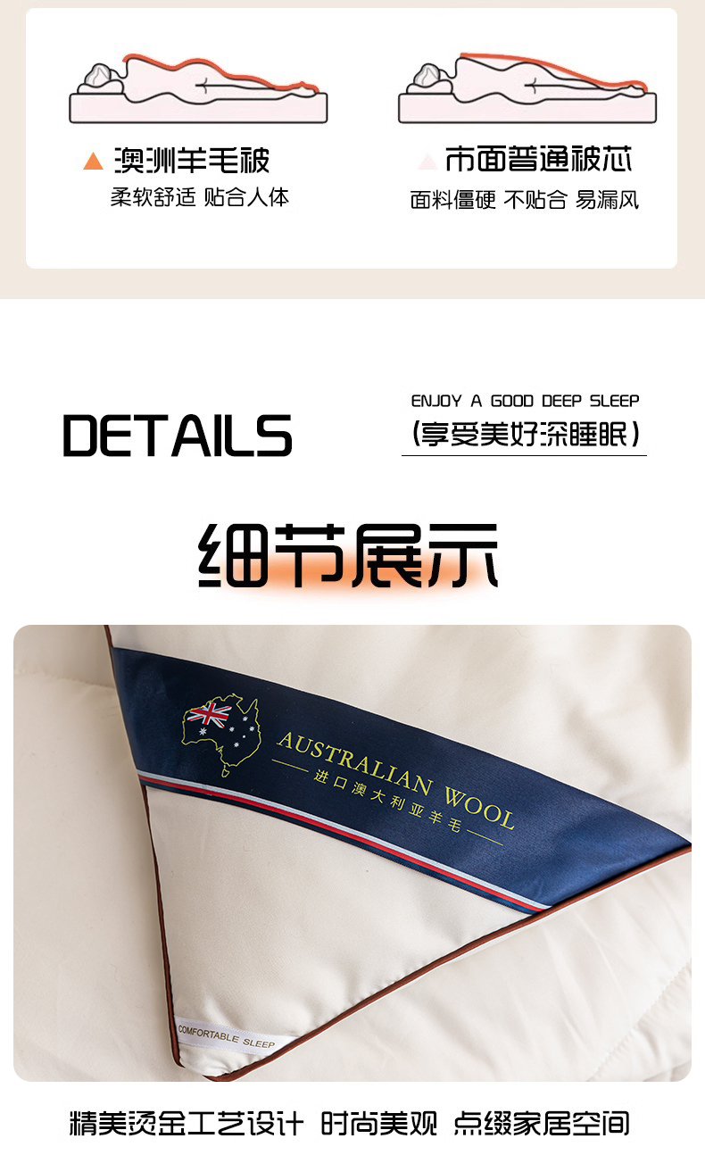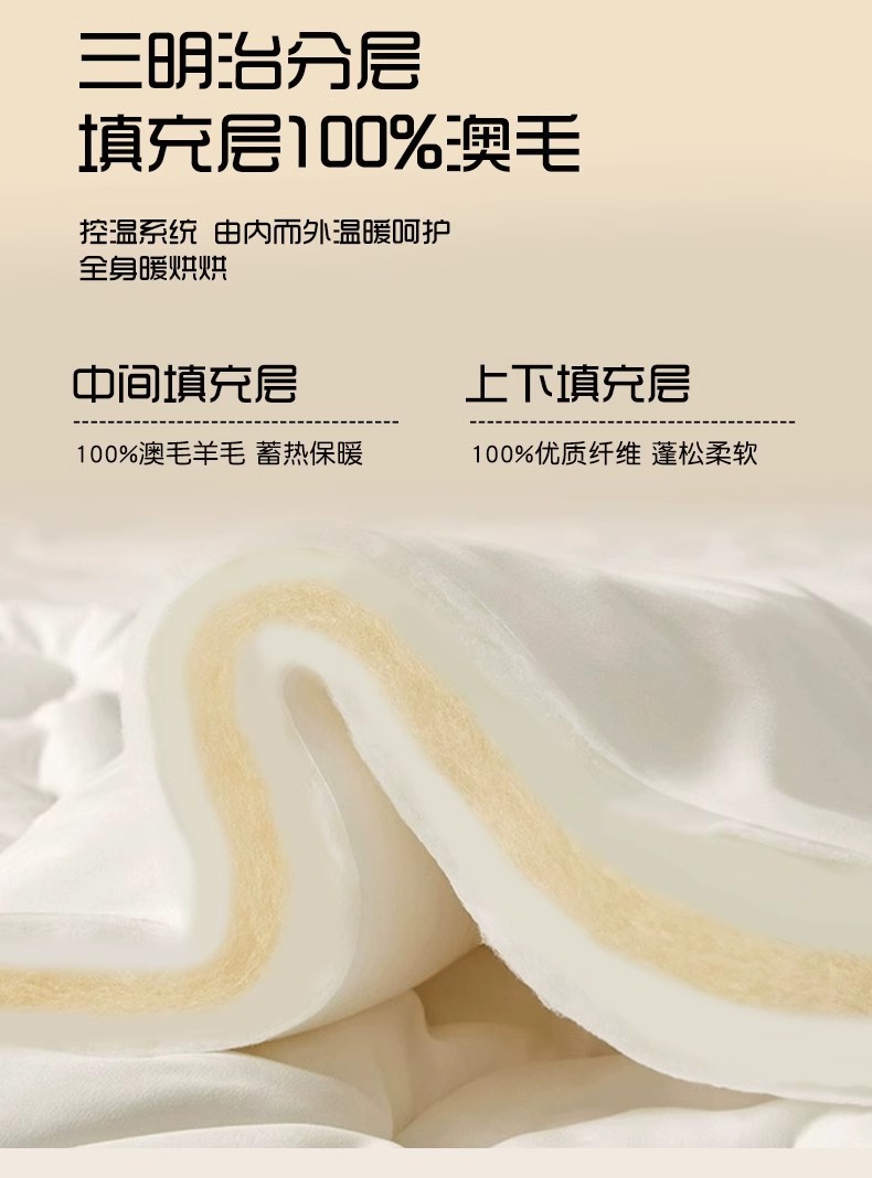 填 充:51%澳毛+49%聚酯纤维 克 重:3000g