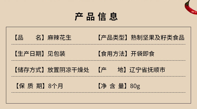 商品名称:还口以麻辣花生80g/包*10包 6945107301015