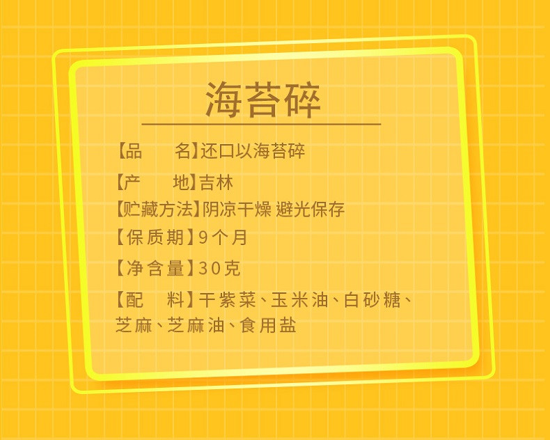 商品名称:还口以海苔碎30g/包*8包 6944867020013