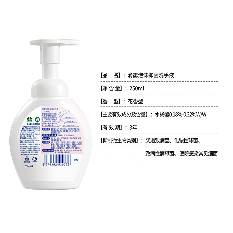 商品名称:滴露泡沫抑菌洗手液花香型250ml 6974352530376