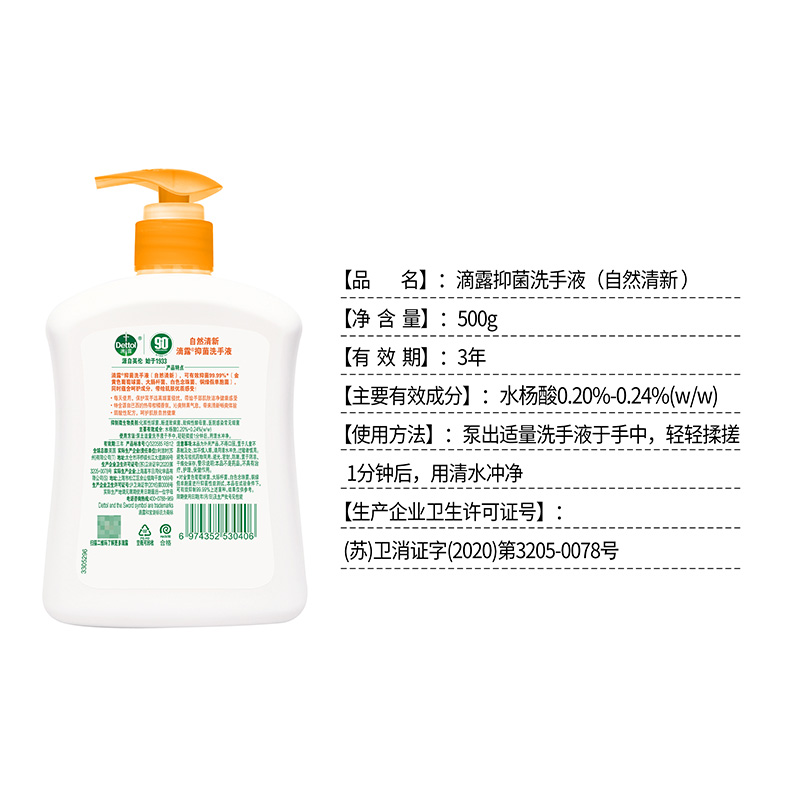 商品名称:滴露抑菌洗手液自然清新500克*2 6974352530406