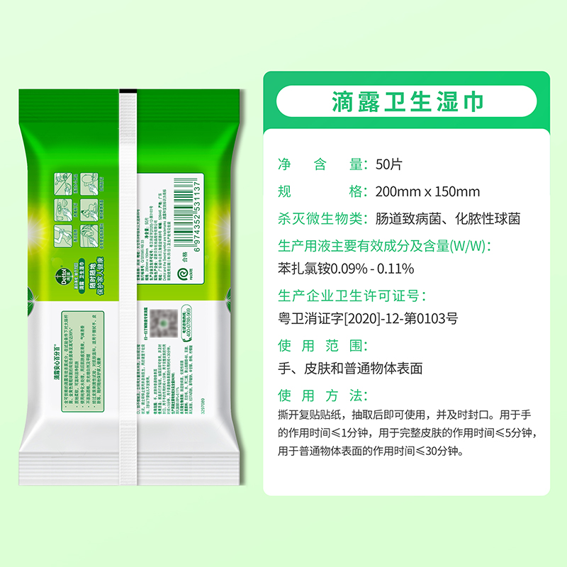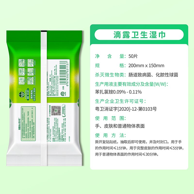 商品名称:滴露卫生湿巾50片装 6974352531137