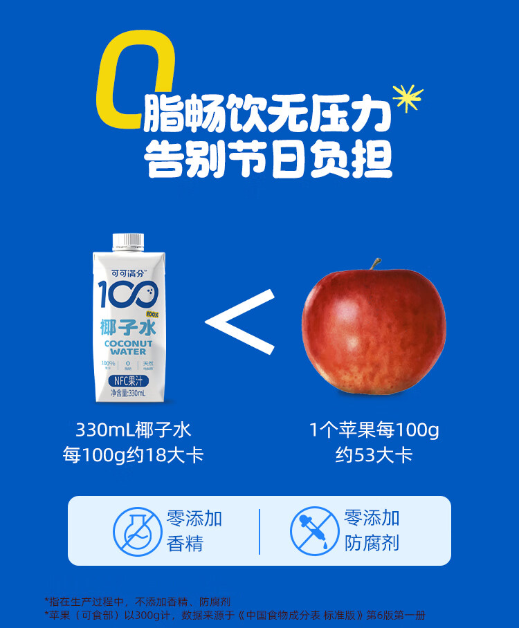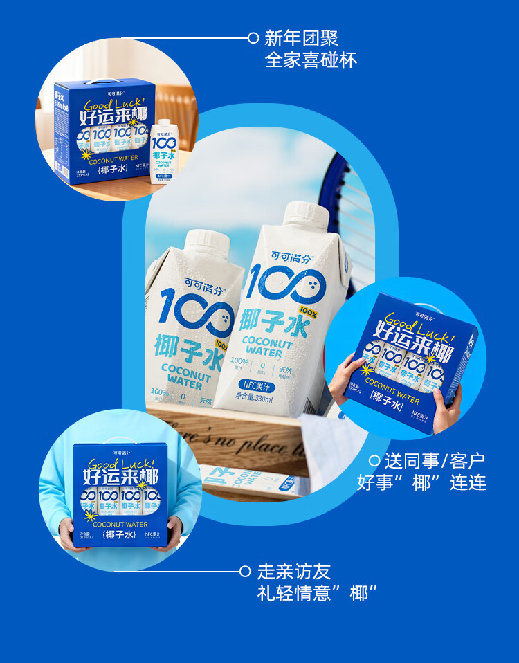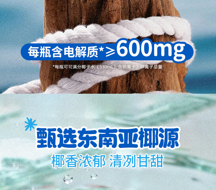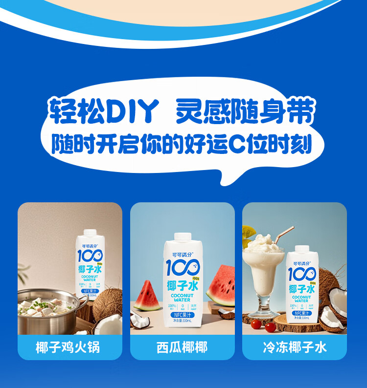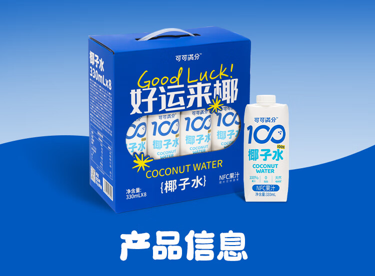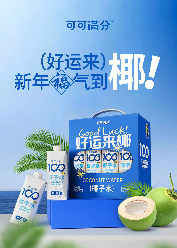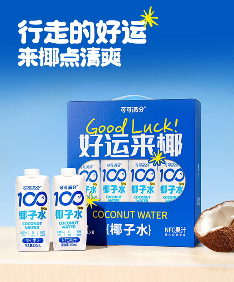 可可满分椰子水330ml*8瓶 电解质水 饮料低糖低卡零脂 6974139943290