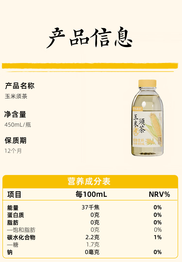 商品名称:可可满分 玉米须茶 450ml*20瓶 6974139943078