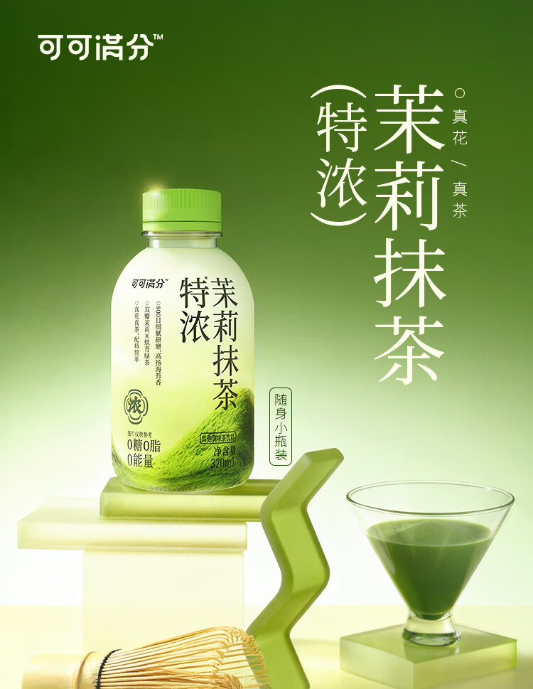 可可满分特浓茉莉抹茶无糖饮料0脂0卡真花真茶配料简单 特浓茉莉抹茶320ml*6瓶 ZH2025120501