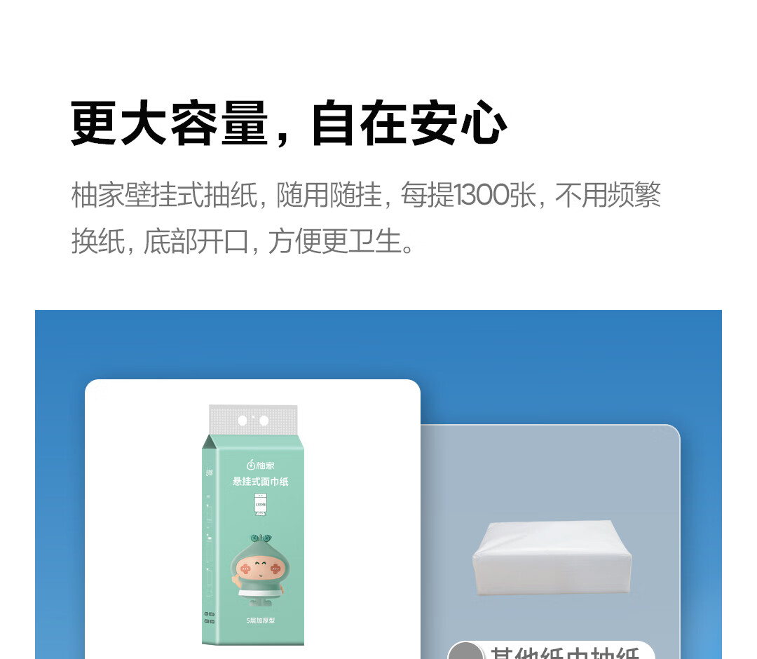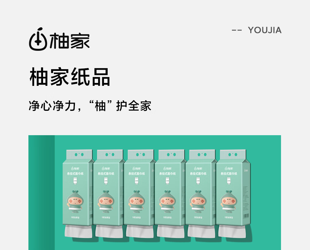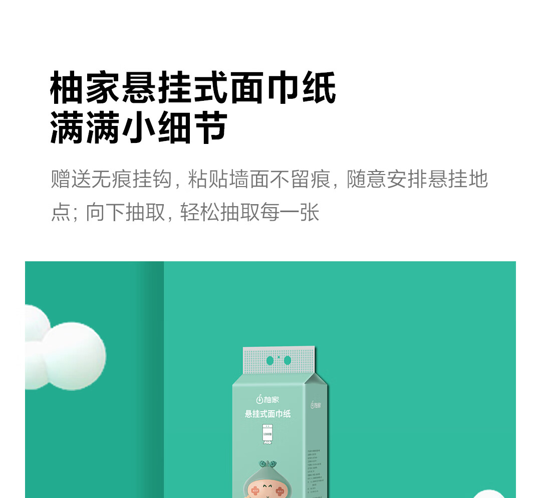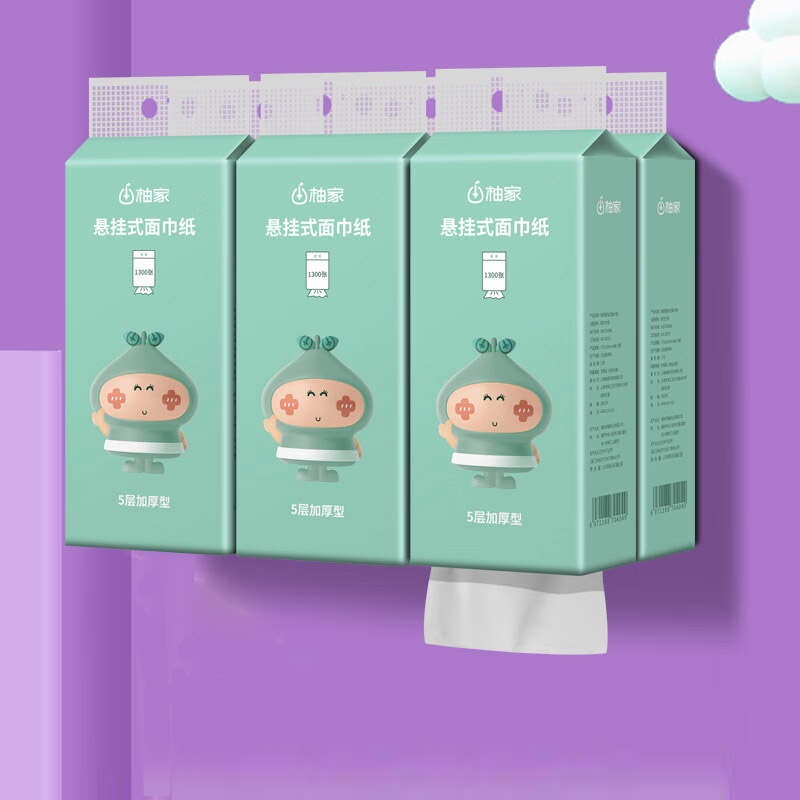 商品名称:柚家悬挂式面巾纸 6提装 515595