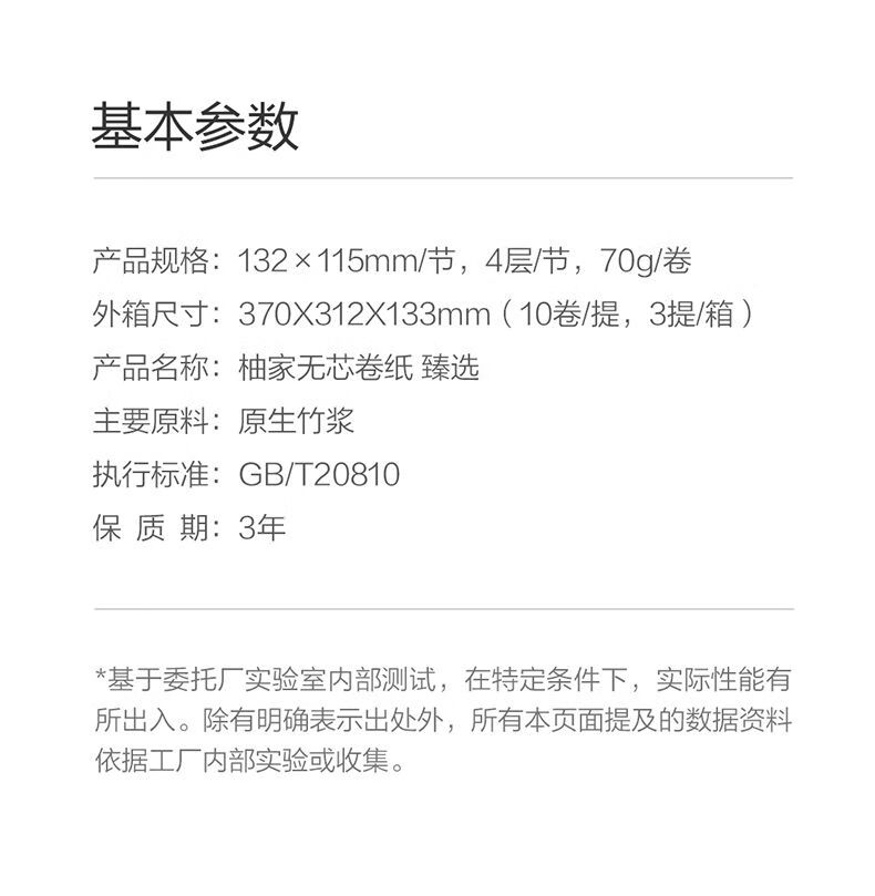商品名称:柚家无芯卷纸(臻选版)10卷/提 3提装 66476