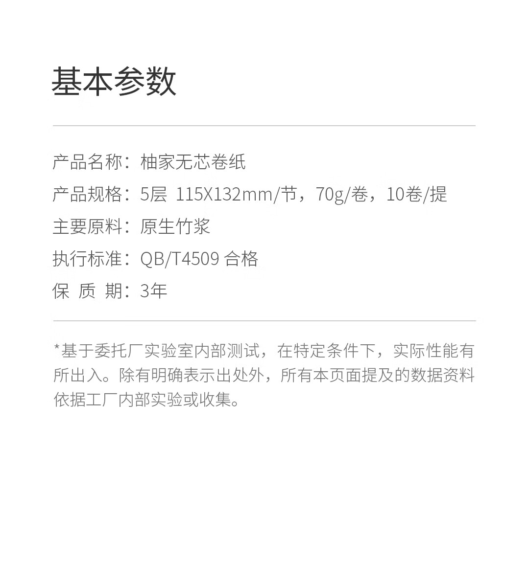 商品名称:柚家无芯卷纸 竹浆款 10卷/提 3提装 21799