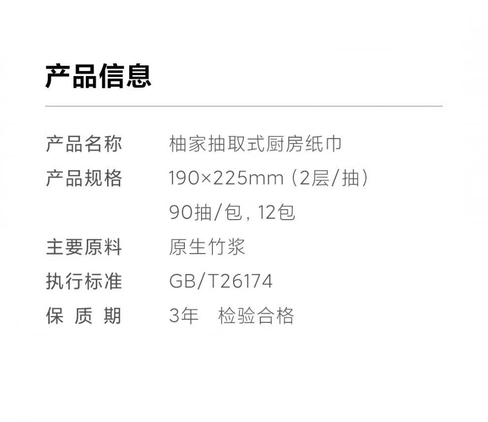 商品名称:柚家抽取式厨房纸巾 3包/提装 223595