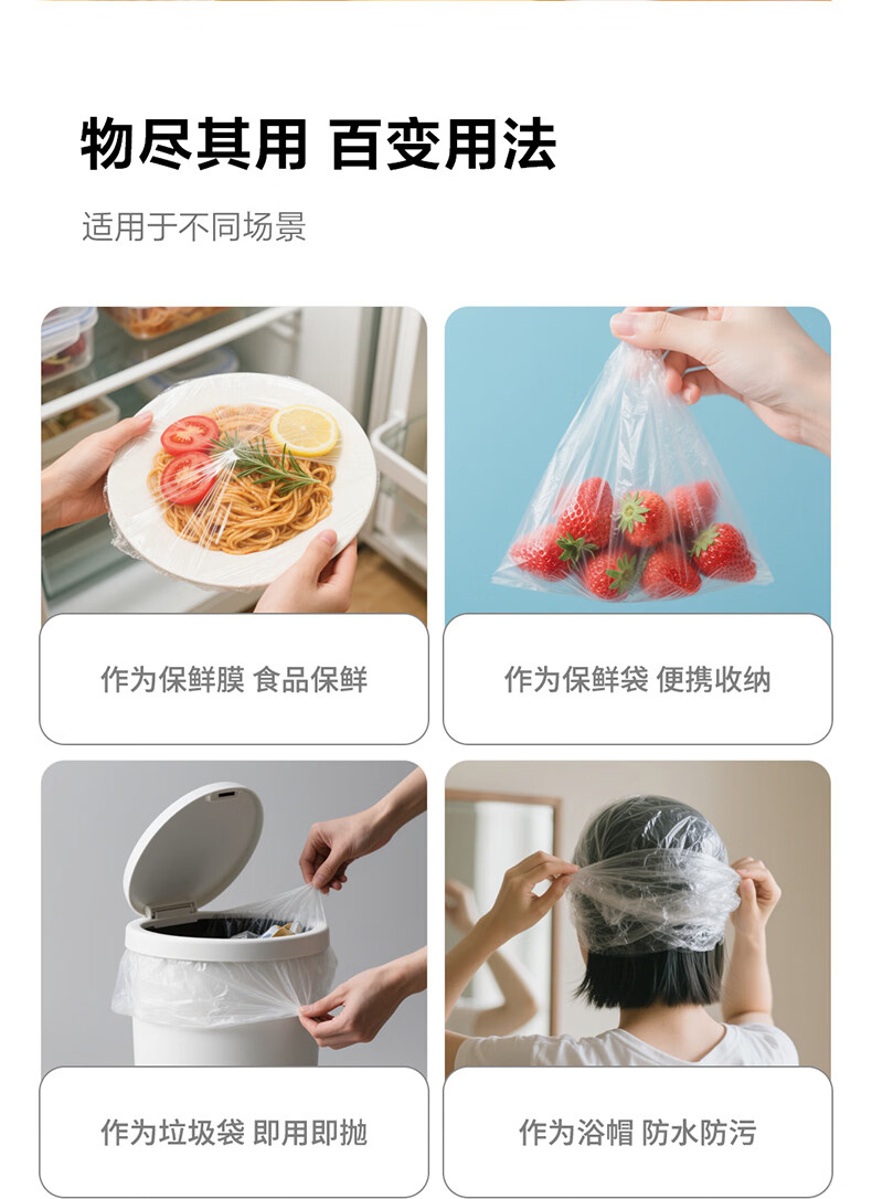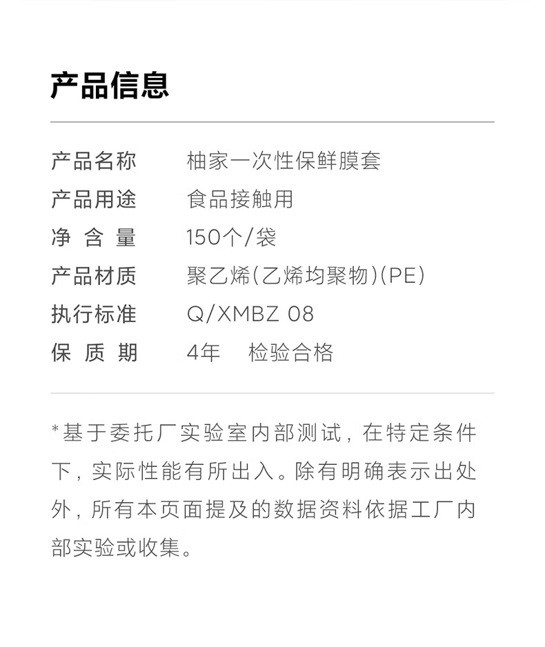 商品名称:柚家一次性保鲜膜套150个/袋 21782
