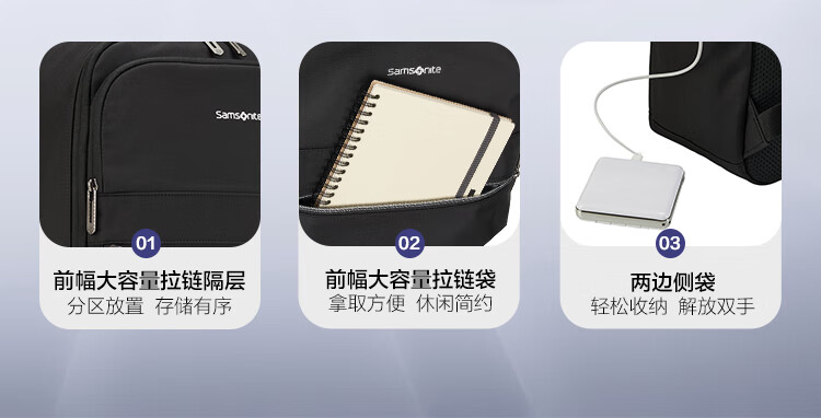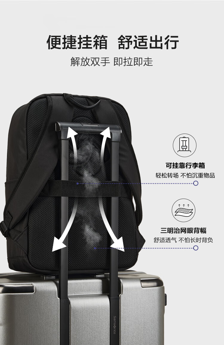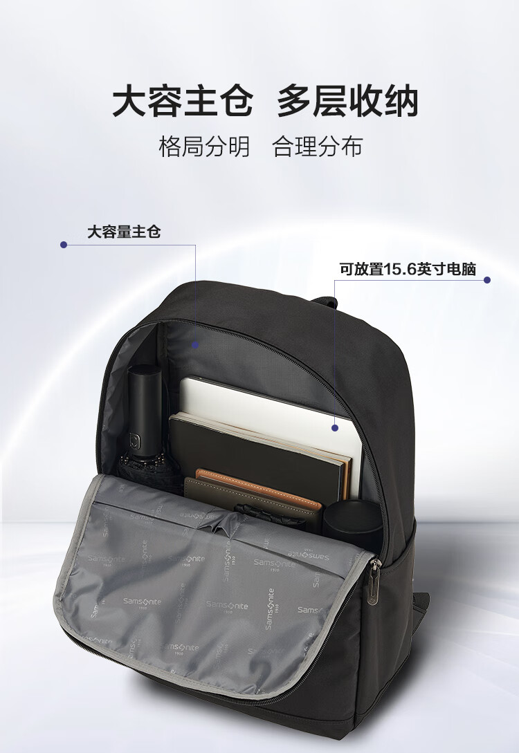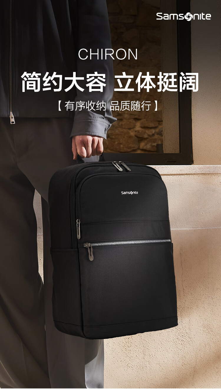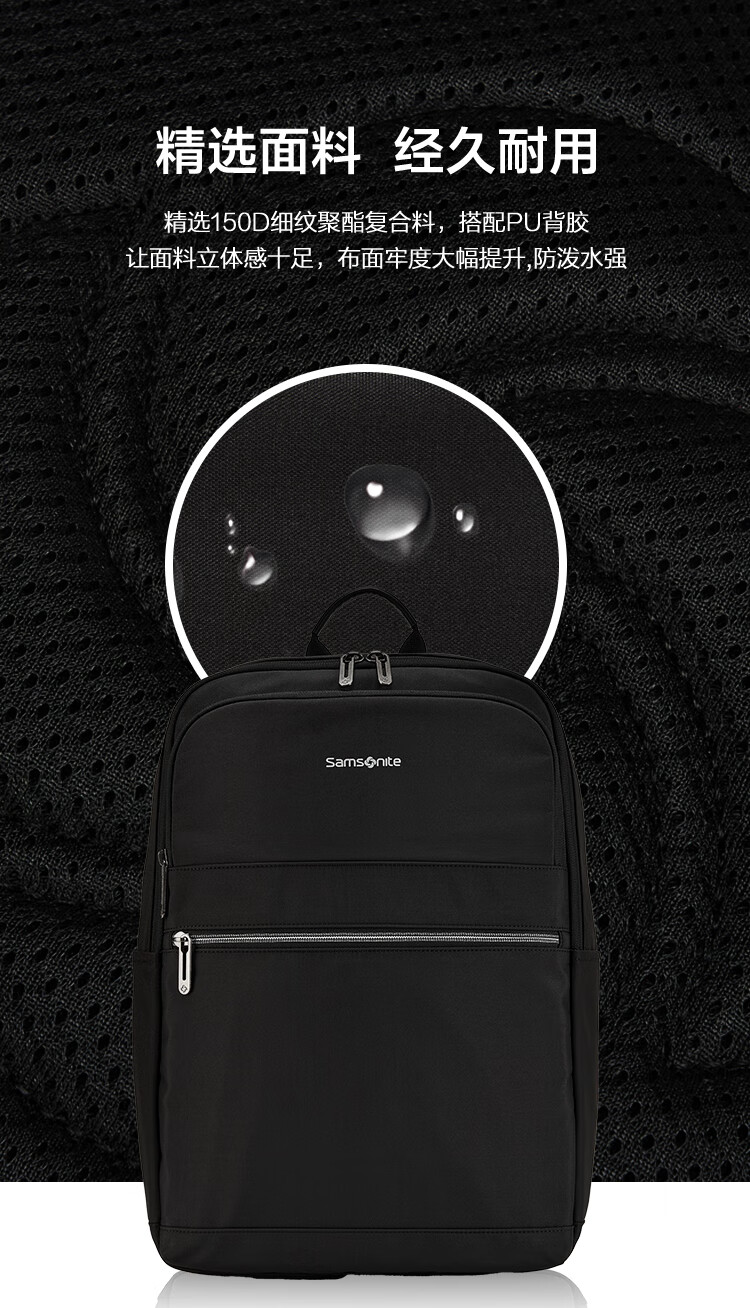 新秀丽(Samsonite)男大容量通勤商务15.6英寸电脑双肩包简约时尚旅行背包NU4*09025 黑色 5400520392220