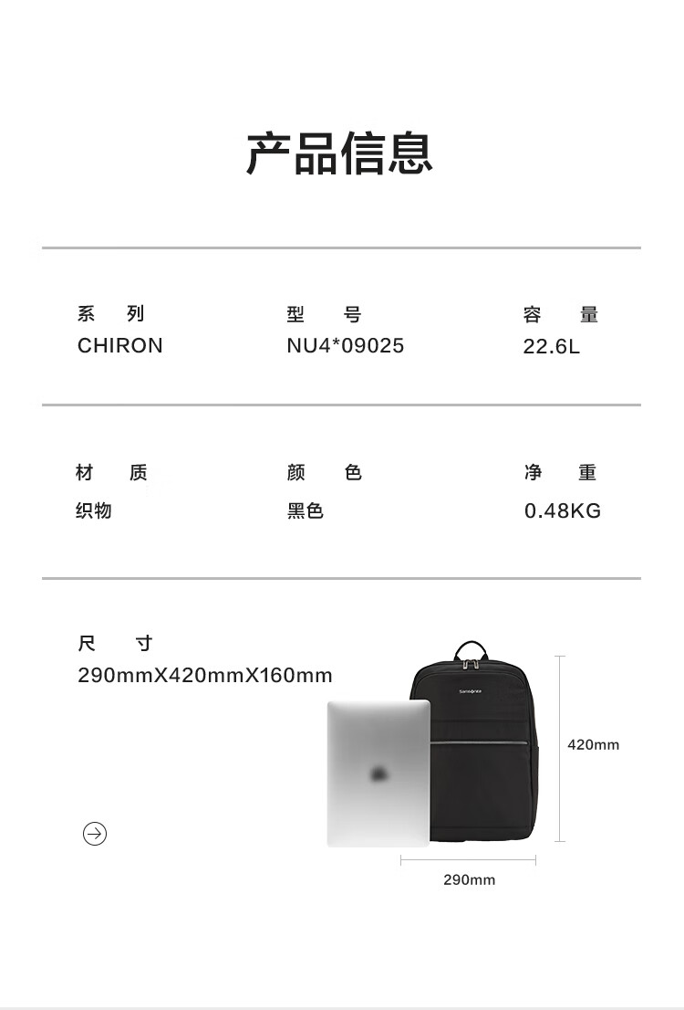 商品名称:新秀丽(Samsonite)男大容量通勤商务15.6英寸电脑双肩包简约时尚旅行背包NU4*09025 黑色 5400520392220