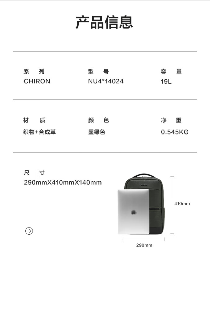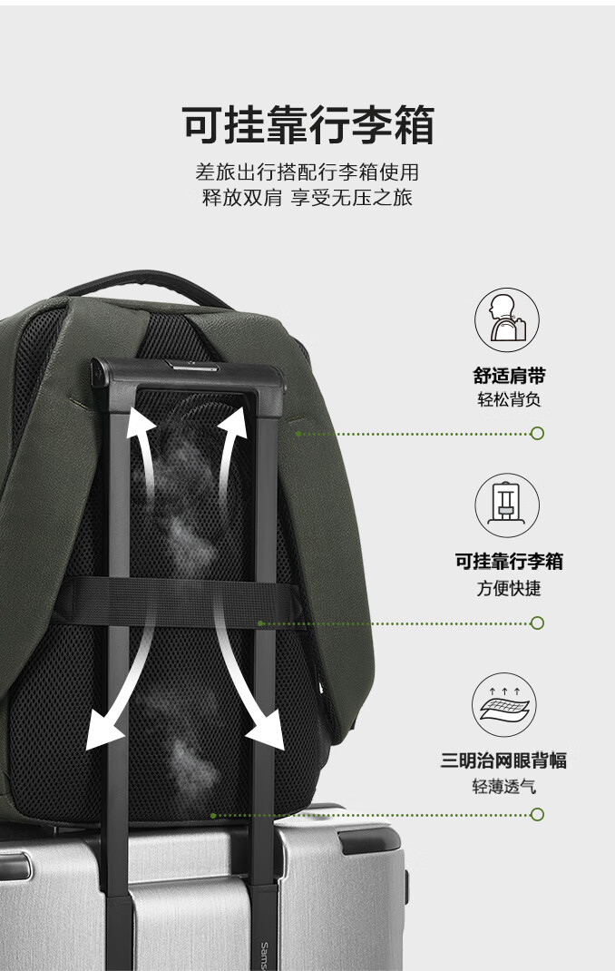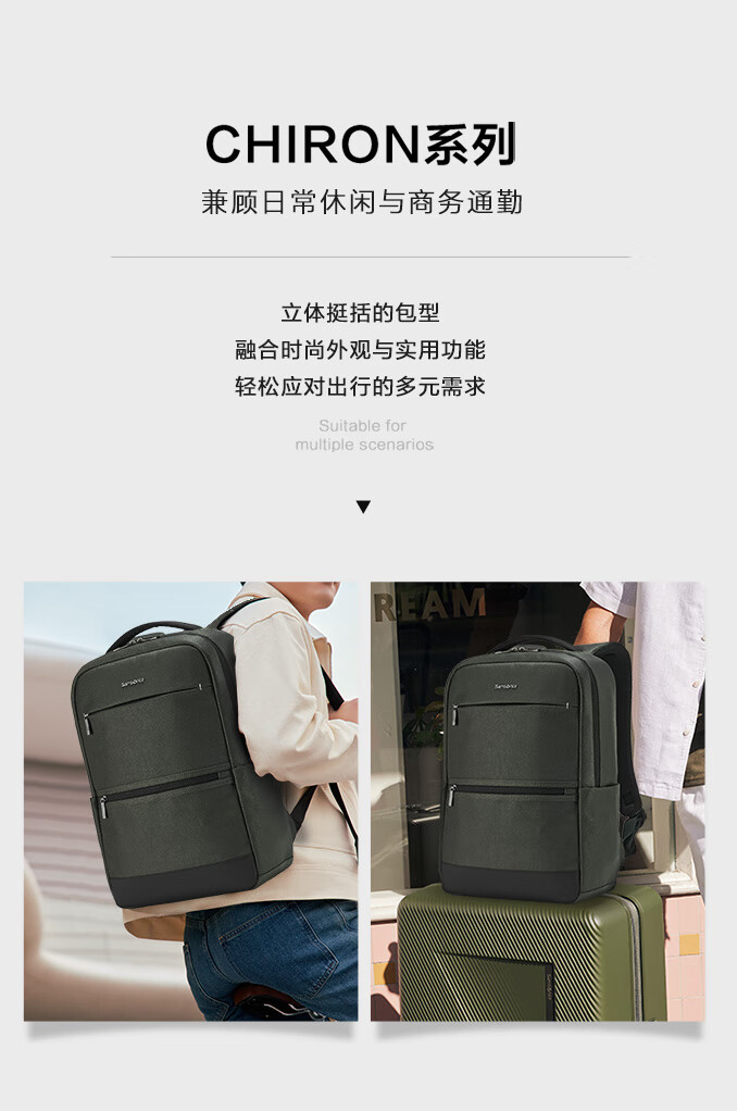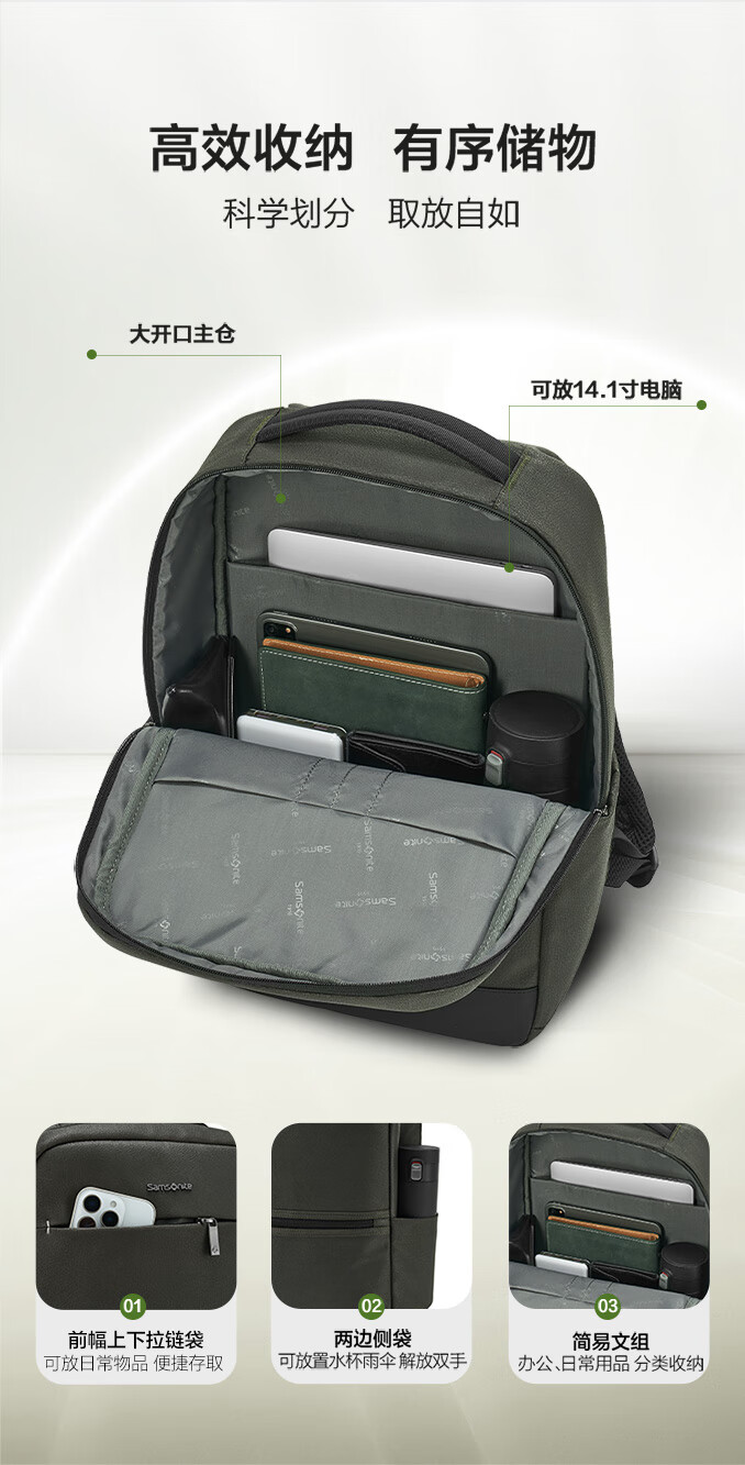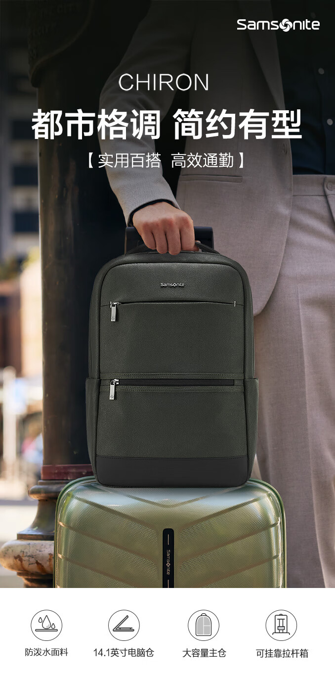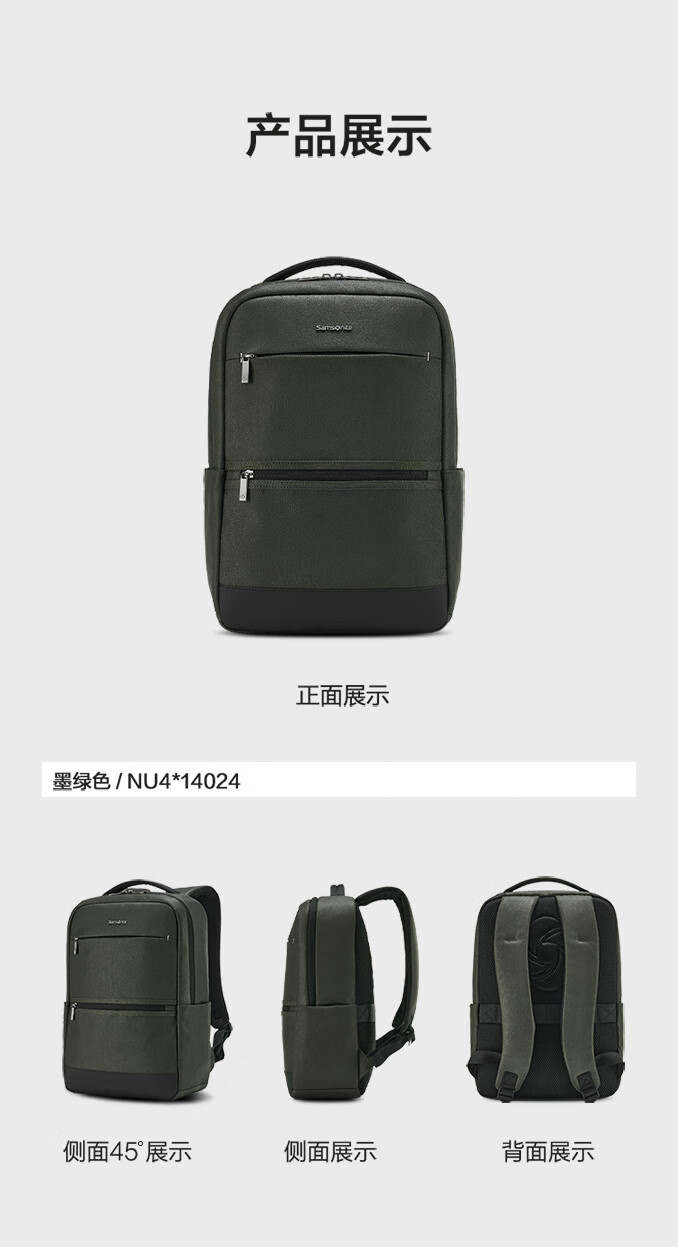 商品名称:新秀丽(Samsonite)男士简约商务双肩包通勤出差电脑包潮流背包大容量学生 NU4*14024 墨绿色 19L 5400520383020