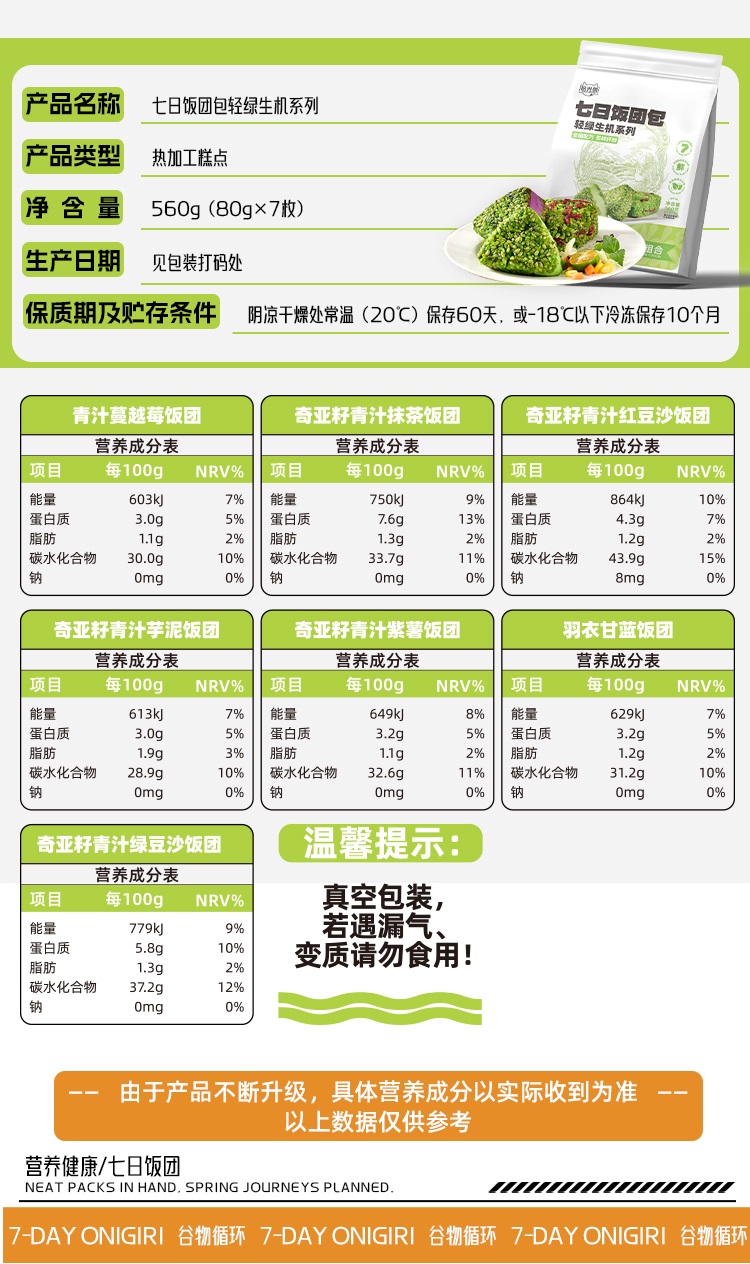 商品名称:拾光兽七日饭团包(轻绿)500g/袋*1袋6973877544103