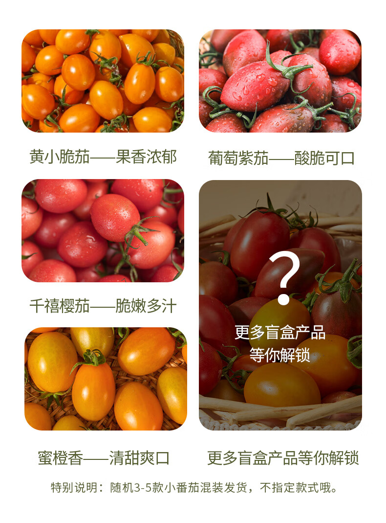 商品名称:小番茄三拼3斤装彩箱(黄+紫+千禧)
