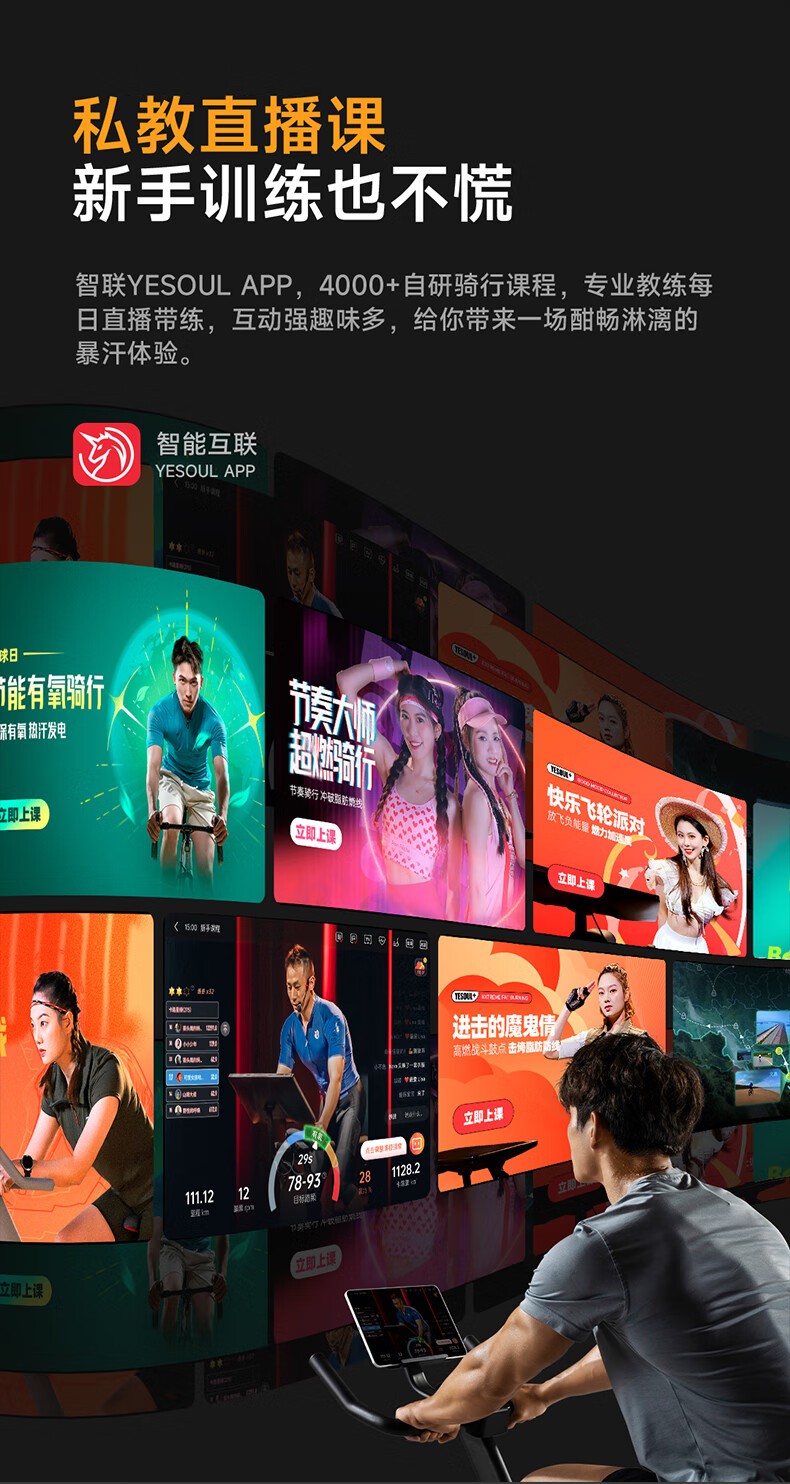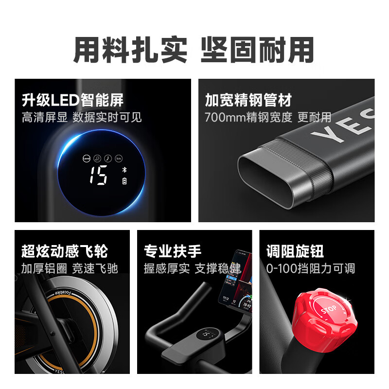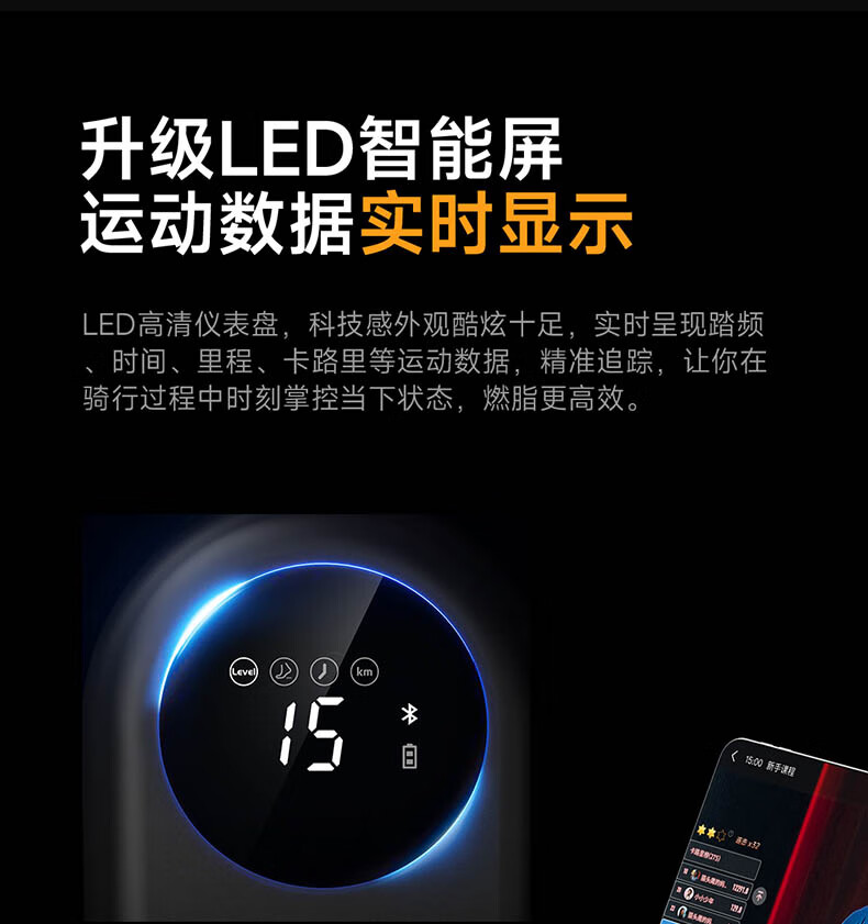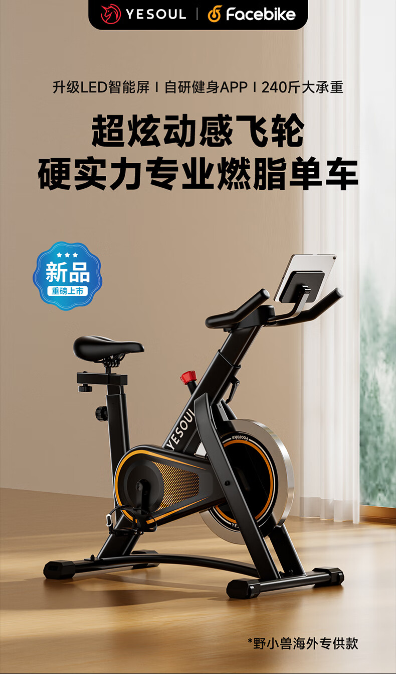 商品名称:野小兽动感单车家用智能健身车静音器材 骑士黑丨100档阻力丨LED智能屏A1