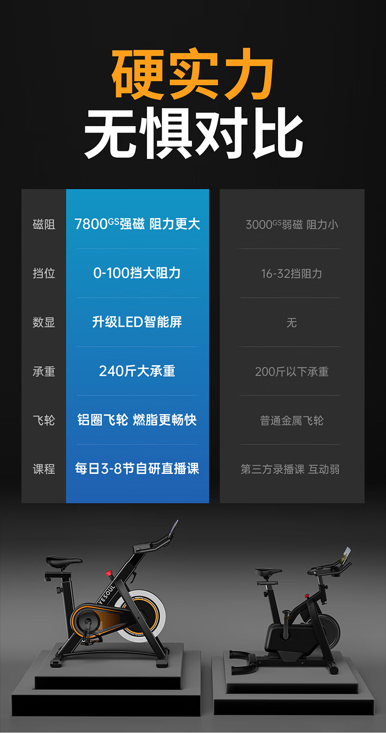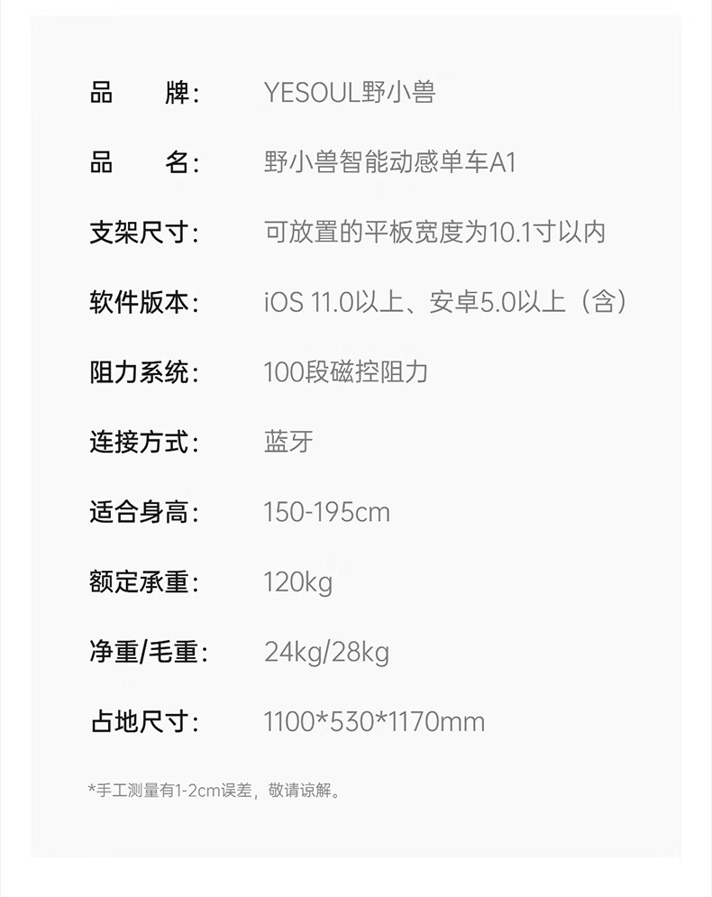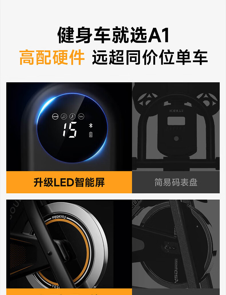 商品名称:野小兽动感单车家用智能健身车静音器材 骑士黑丨100档阻力丨LED智能屏A1