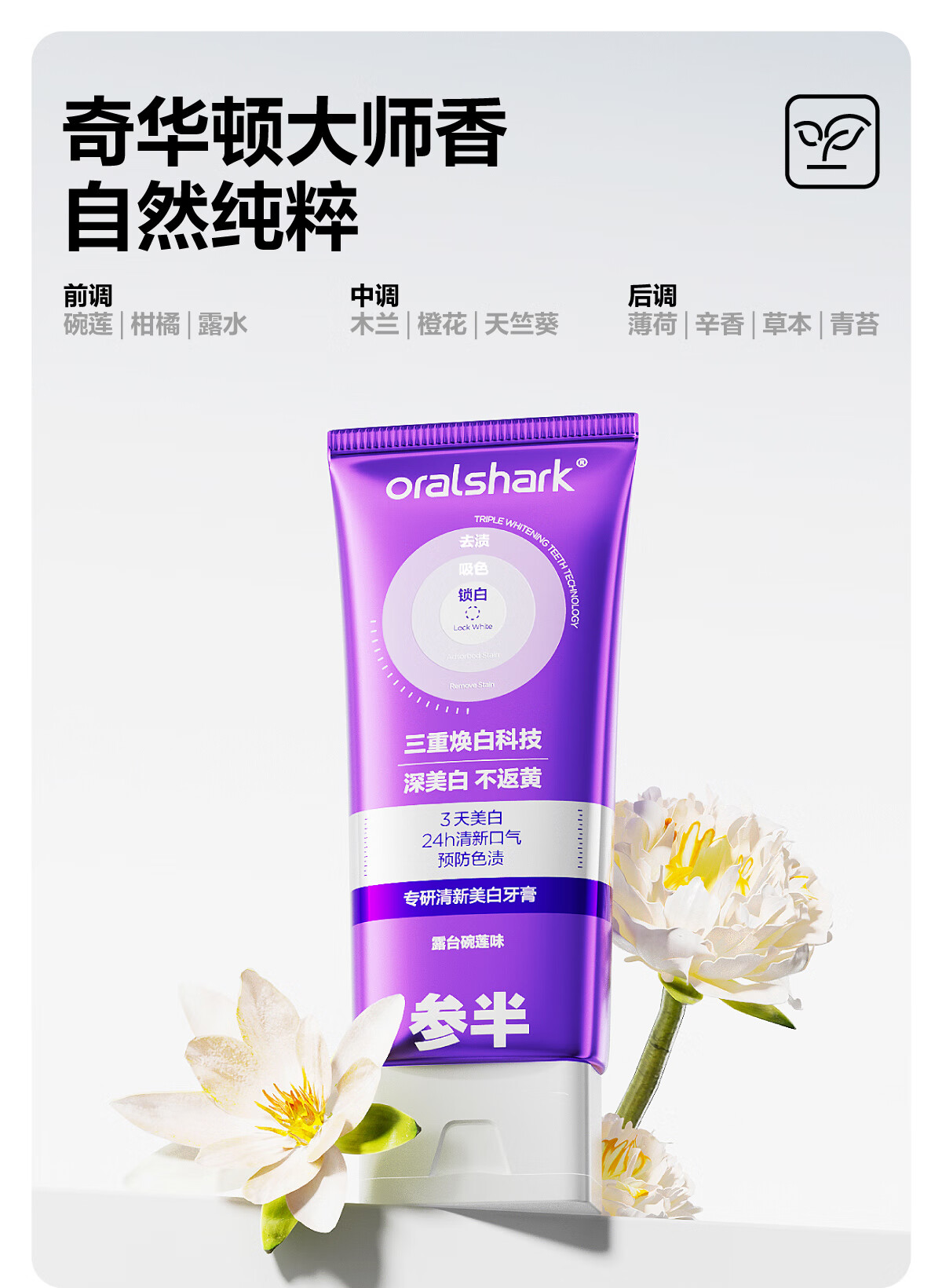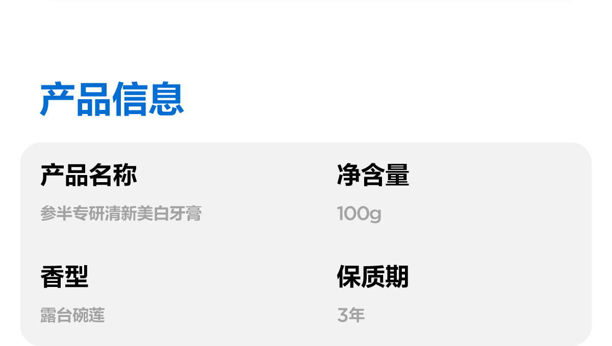 商品名称:参半专研美白清新牙膏100G(露台碗莲)FTP25102902 6970356162636