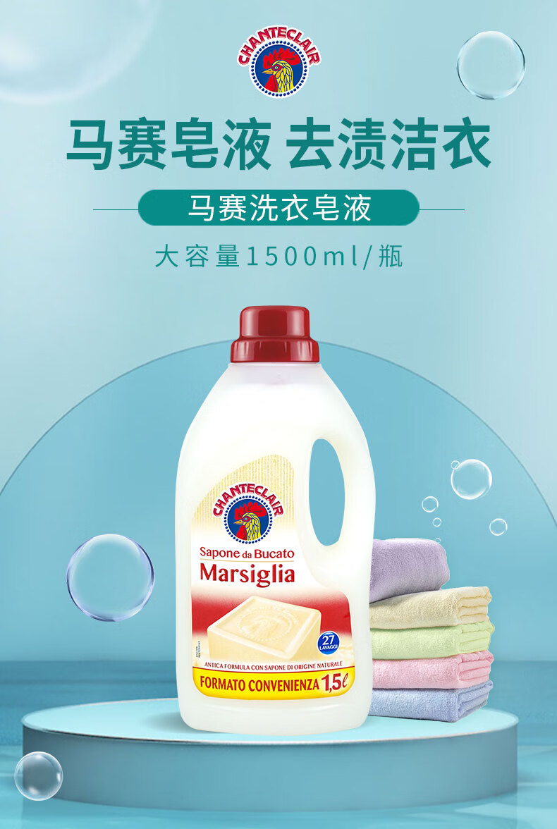 大公鸡管家(CHANTE CLAIR)液态洗衣皂洗衣液1500ml 马赛香大公鸡洗衣液 DGJ0015 8015194502522