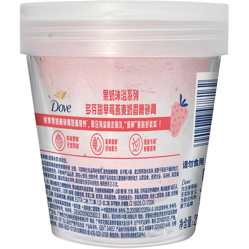 商品名称:多芬(Dove)果奶身体磨砂膏温和去角质果酸滋润焕亮草莓香250g DF25102714 6902088978162