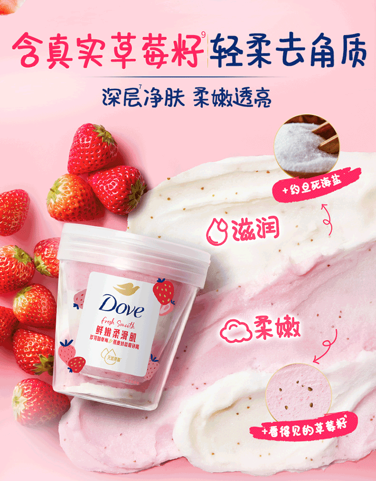 多芬(Dove)果奶身体磨砂膏温和去角质果酸滋润焕亮草莓香250g DF25102714 6902088978162