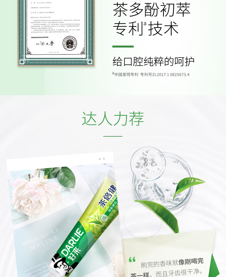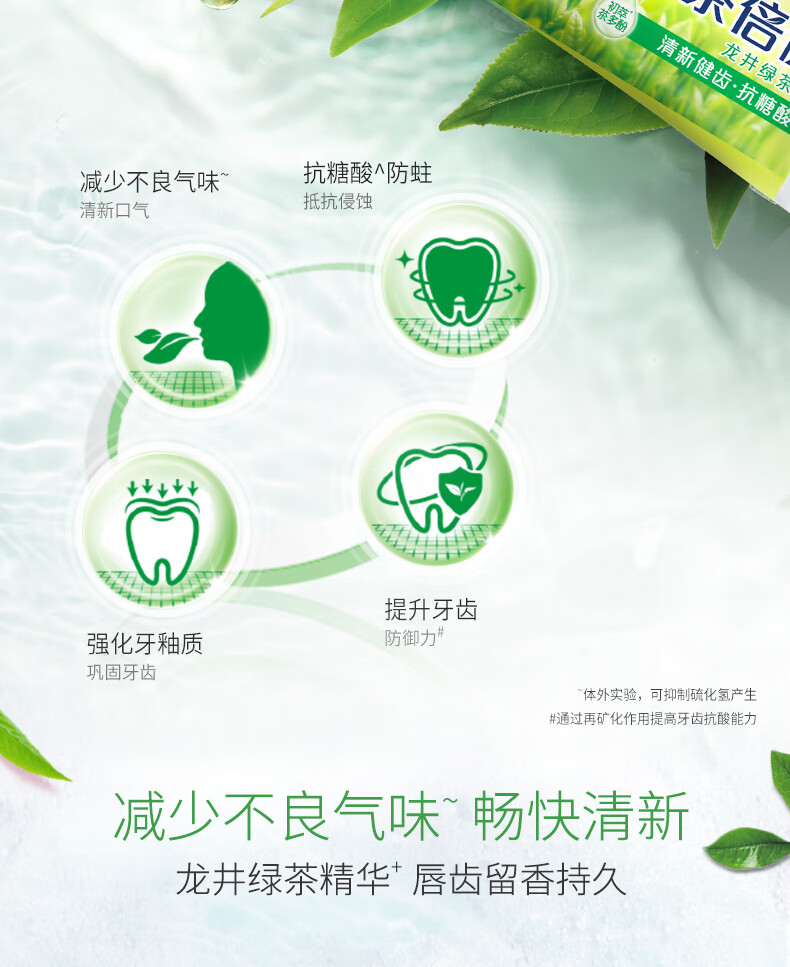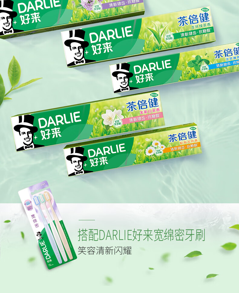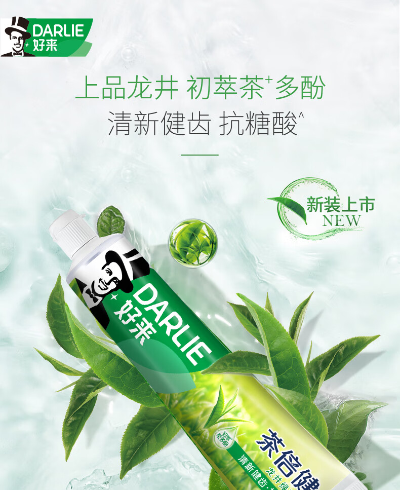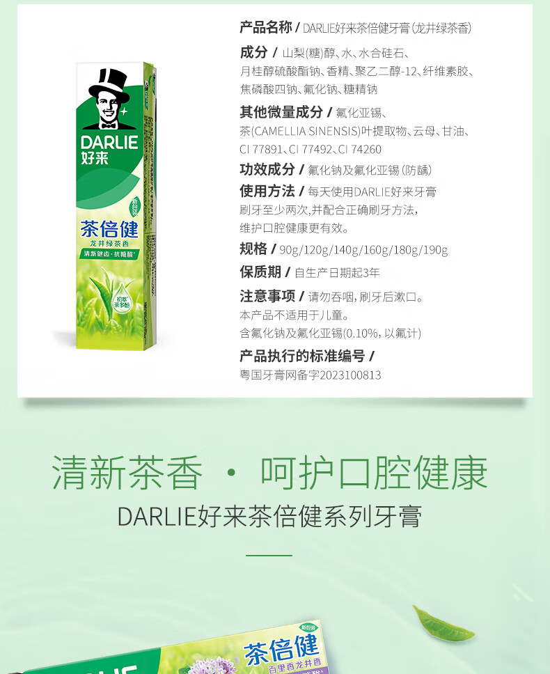 商品名称:好来(DARLIE)原黑人牙膏茶倍健龙井绿茶清新口气护龈固齿牙渍含氟 龙井绿茶140g HL25071601 4891338010559