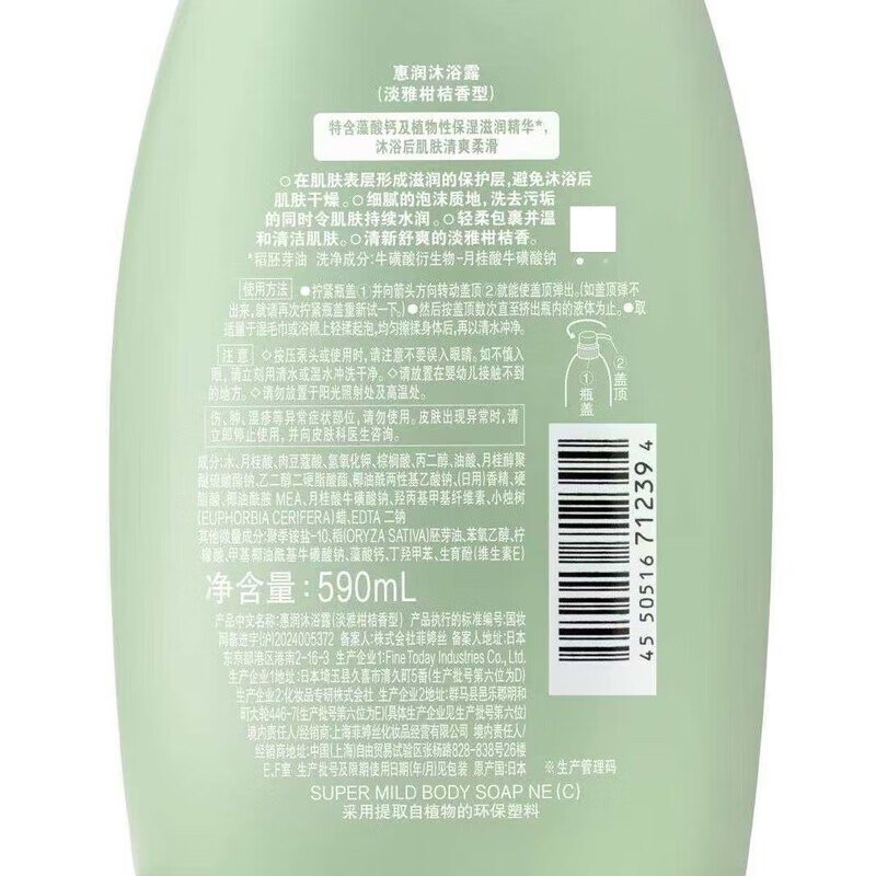 商品名称:惠润滋润沐浴露持久留香柑桔沐浴乳590ml HR0004 4550516712394