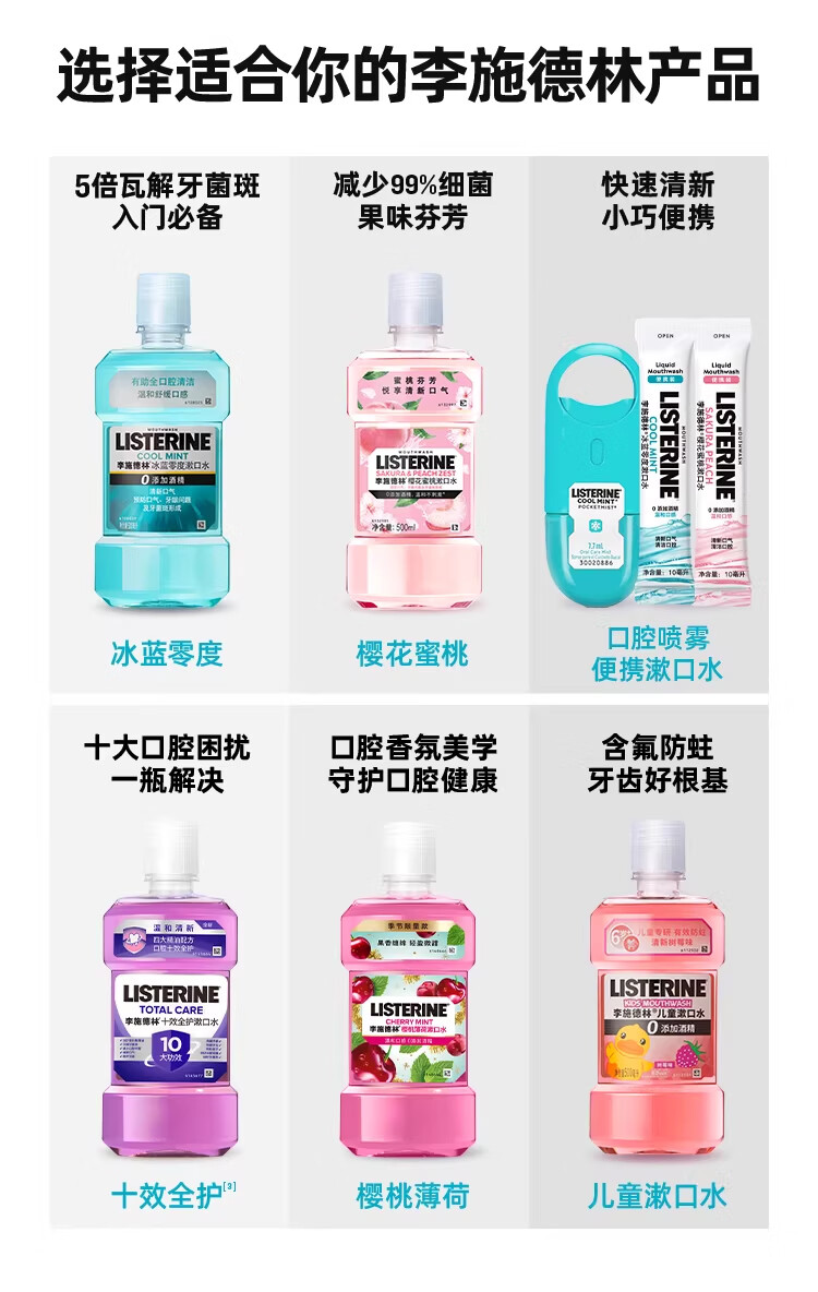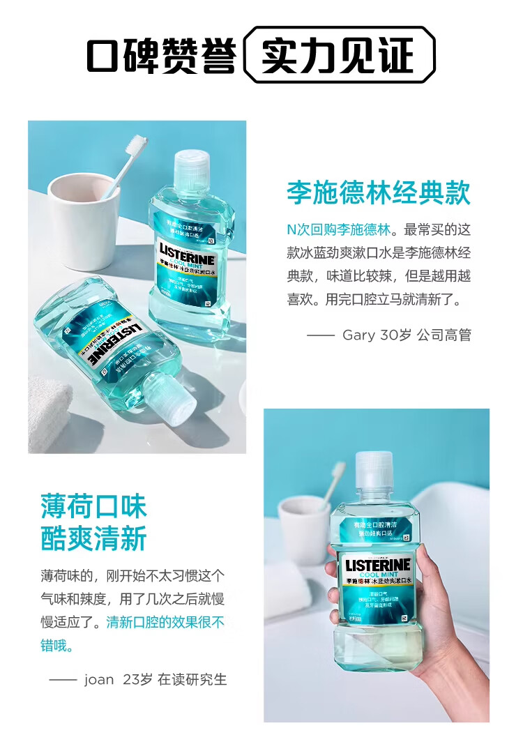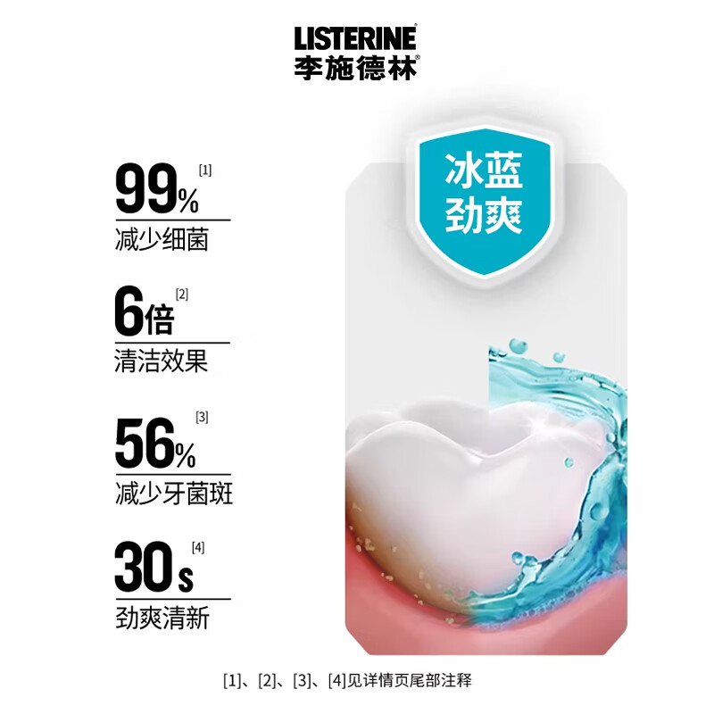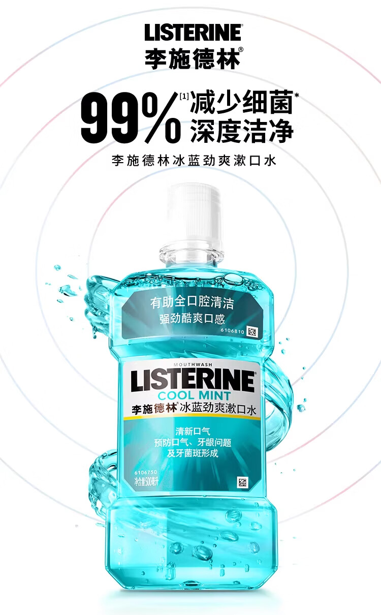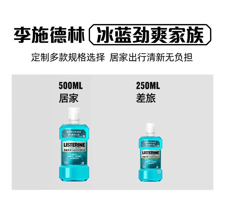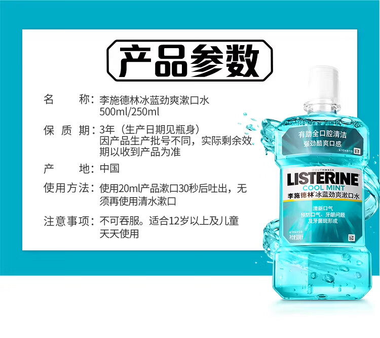 商品名称:李施德林 (Listerine) 漱口水冰蓝劲爽口味250mL清新口气深层清洁减少细菌 LSDL26012108 6907376821052