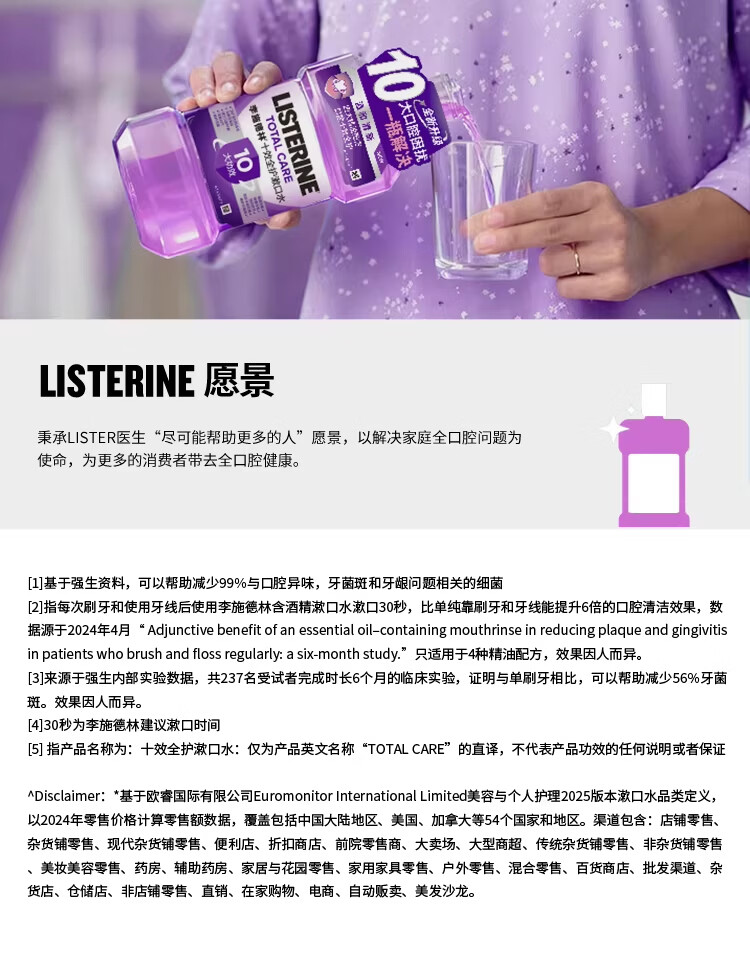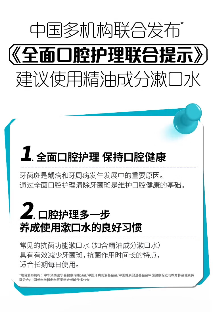 李施德林 (Listerine) 漱口水冰蓝劲爽口味250mL清新口气深层清洁减少细菌 LSDL26012108 6907376821052