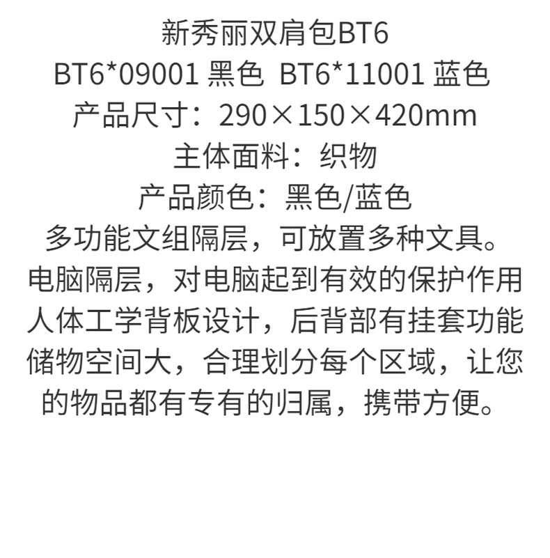 商品名称:新秀丽双肩包-黑色 BT6*09001