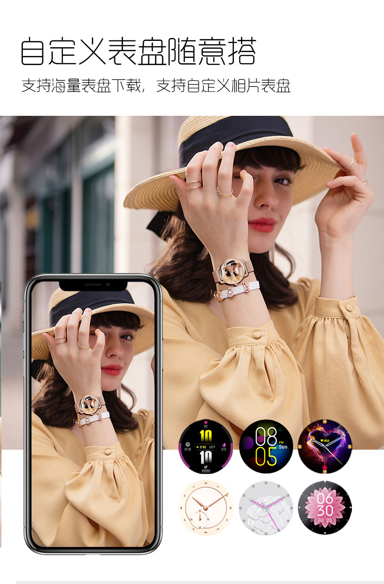 商品名称:Lefit 勒菲特 时尚智能手表女2021新款手环测血压心率血氧体温健康睡眠运动电子多功能防水腕表 XY218S 白色真皮表带
