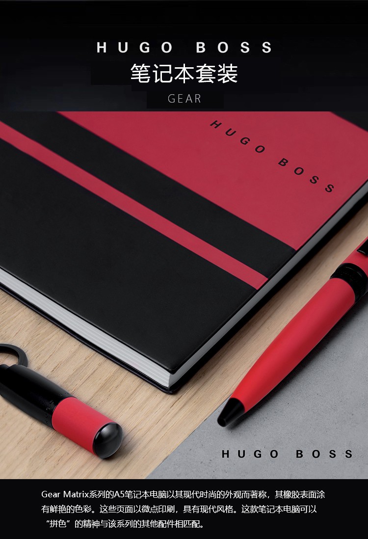 商品名称:HUGOBOSS 标志系列钢笔+传动笔记本礼盒套装 黑色