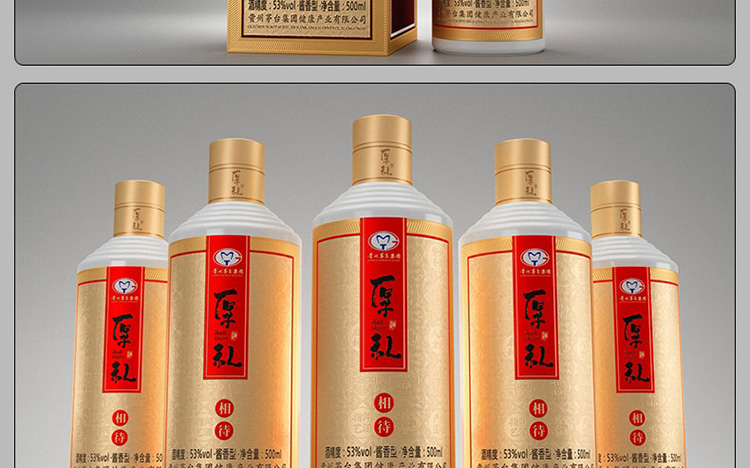 商品名称:厚礼 贵州茅台集团厚礼相待酒 酱香型白酒53度 500ml/瓶 四瓶起拍
