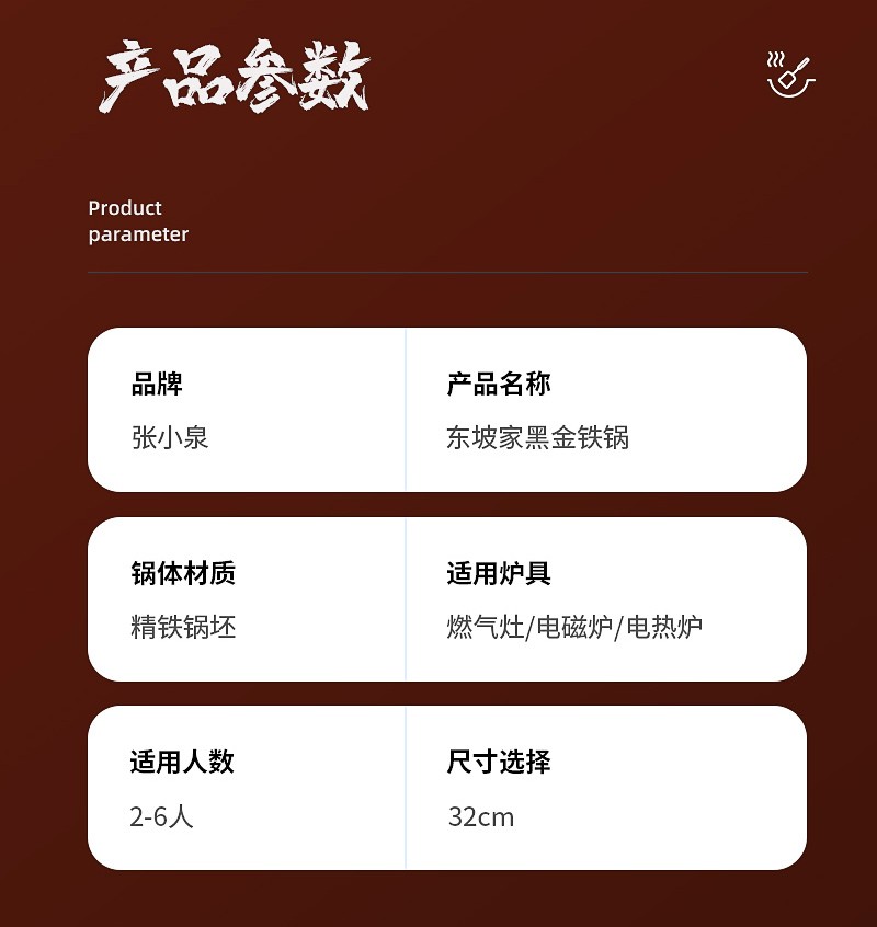 商品名称:千澈 张小泉东坡家黑金铁锅 精铁
