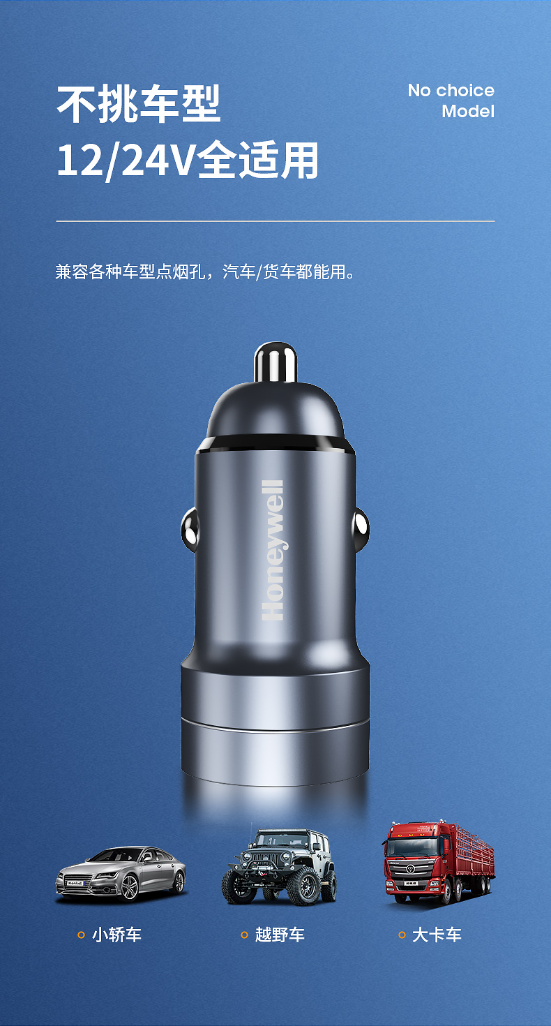 商品名称:霍尼韦尔(Honeywell)车载充电器点烟器一拖二双USB金属车充电源转换器插头扩展智能控温HZCC2 6971870047522