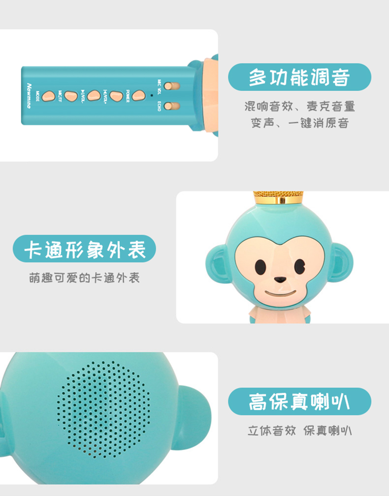 商品名称:纽曼(Newmine)MC13 手机麦克风卡通无线蓝牙话筒K歌内置声卡掌上KTV 音箱音响一体全民K 卡通棕