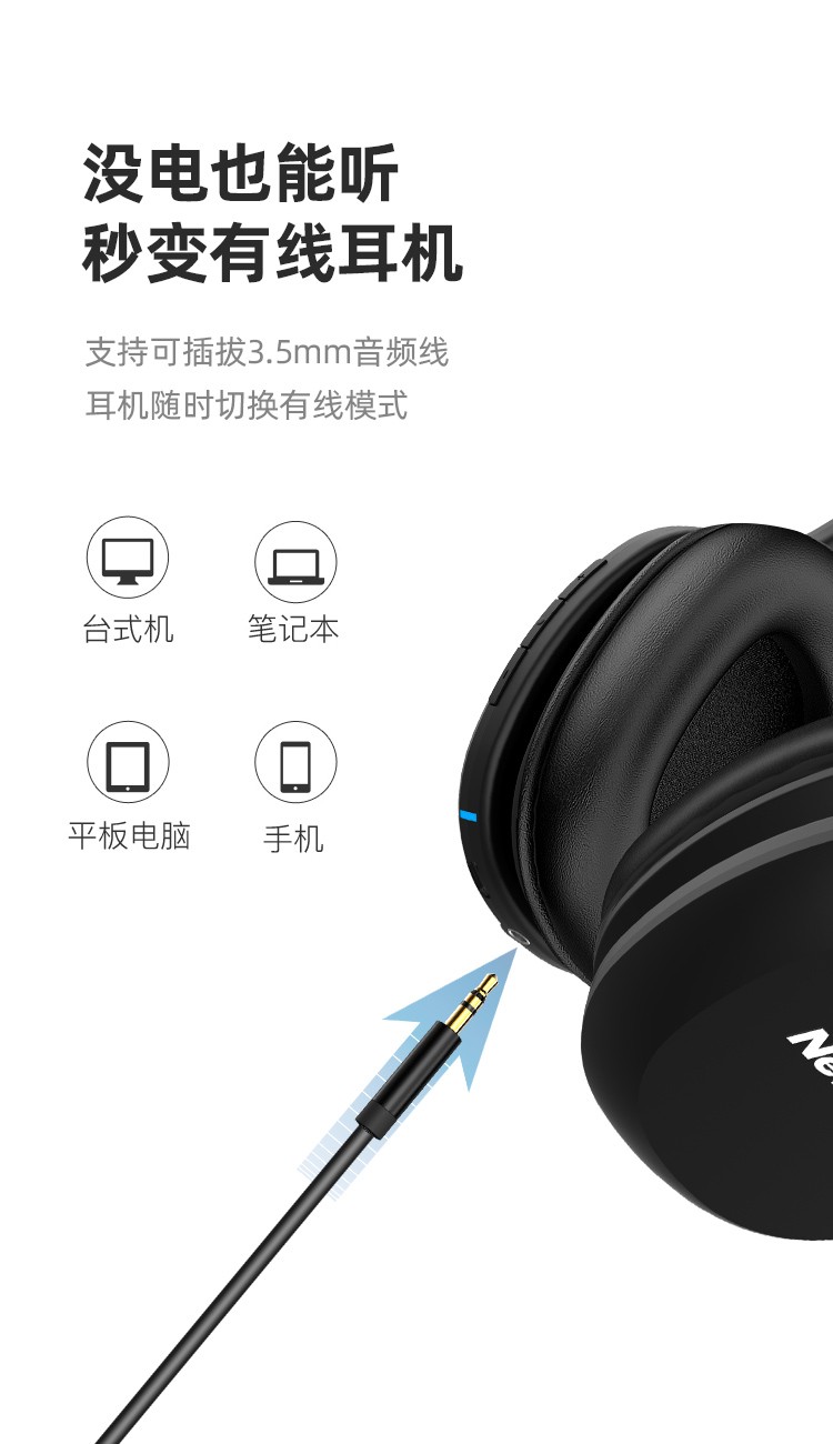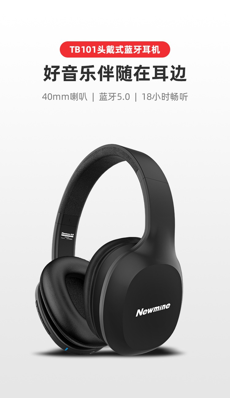 纽曼HIFI头戴式立体声蓝牙耳机TB101(活力白) 游戏/音乐/手机耳机