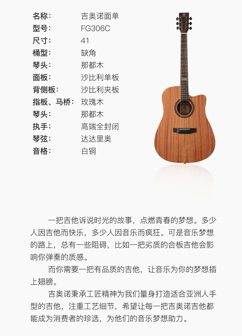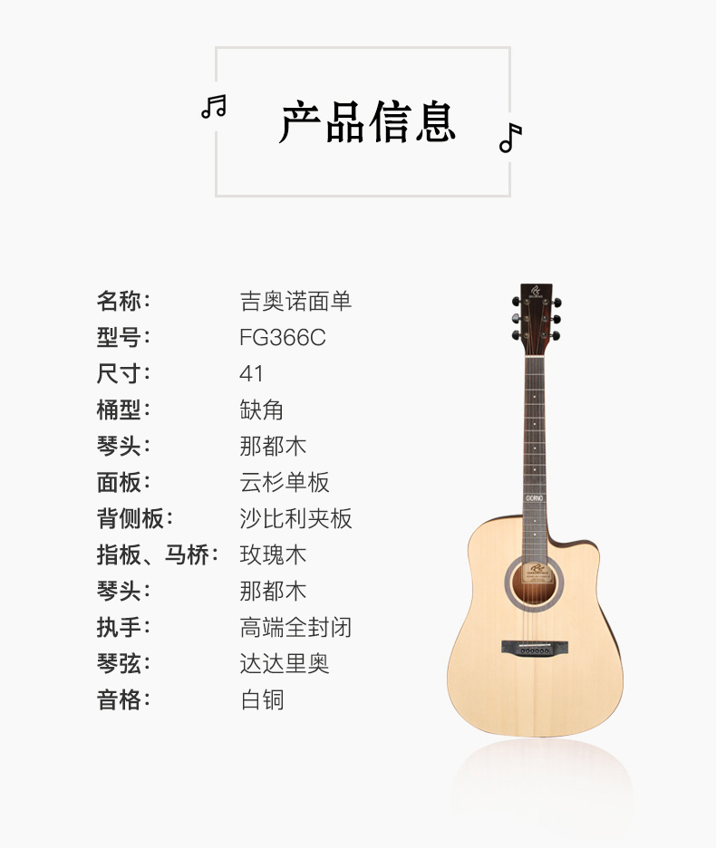 商品名称:Giorno/吉奥诺 民谣吉他 FG306C-41